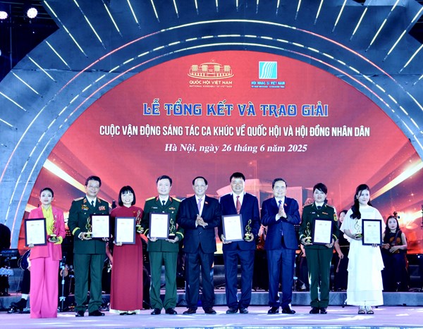 VOVVN - VOV.VN - Chiều tối 27/6, Ủy ban Thường vụ Quốc hội, Ban Tổ chức Cuộc vận động sáng tác ca khúc về Quốc hội và Hội đồng nhân dân đã tổ chức Lễ Tổng kết và...