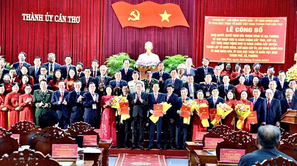 VOVVN - VOV.VN - Phát biểu tại Lễ công bố Nghị quyết, Quyết định của TW và địa phương về sáp nhập đơn vị hành chính cấp tỉnh, cấp xã tại TP Cần Thơ ngày 30/6, Chủ tịch...
