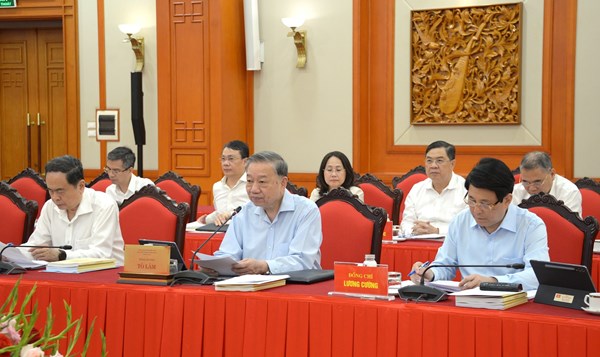 VOVVN - VOV.VN - Sáng 10/9, tại Trụ sở Trung ương Đảng, dưới sự chủ trì của Tổng Bí thư Tô Lâm, Bộ Chính trị làm việc với Ban Thường vụ Đảng ủy Chính phủ để cho ý kiến vào dự thảo các...