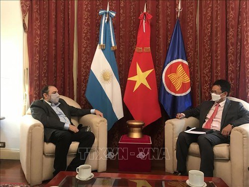 VOV5 - (VOV5) -Ngày 17/11, tại trụ sở Đại sứ quán Việt Nam tại Argentina, Đại sứ Dương Quốc Thanh có buổi tiếp và làm việc với Giám đốc Đài Phát thanh Quốc gia Argentina (RNA) Alejandro...