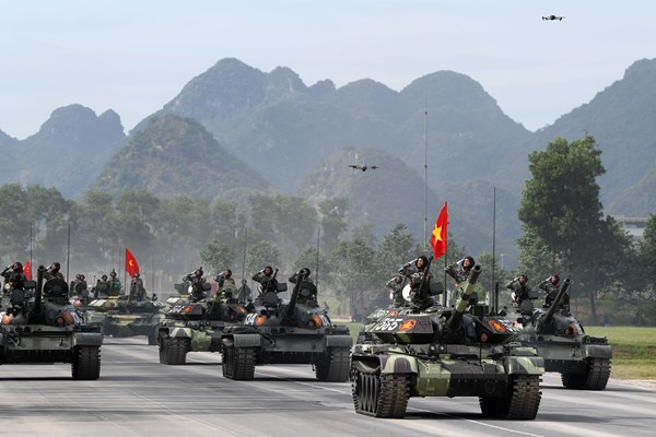 VOVVN - VOV.VN - Các khối xe, pháo quân sự, vũ khí chuyên dụng đã tiếp tục xuất hiện trong buổi Tổng hợp luyện lần thứ 2 diễn ra sáng 5/8 tại Trung tâm huấn luyện quân...