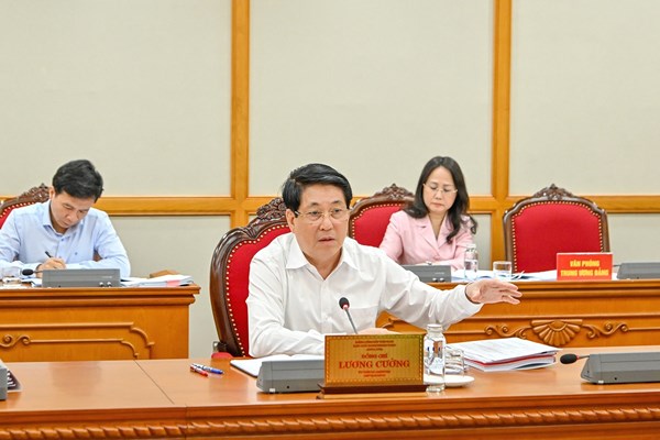 VOVVN - VOV.VN - Hôm nay (25/8), tại Trụ sở Trung ương Đảng, Chủ tịch nước Lương Cường chủ trì làm việc với Ban Thường vụ Tỉnh uỷ Điện Biên và Ban Thường vụ Tỉnh ủy Gia...