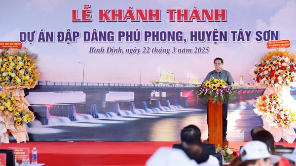 VOVVN - VOV.VN - Chiều 22/3, trong chương trình công tác tại tỉnh Bình Định, Thủ tướng Phạm Minh Chính dự lễ khánh thành đập dâng Phú Phong tại huyện Tây Sơn.