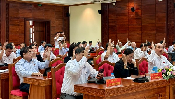 VOVVN - VOV.VN - Tại kỳ họp chuyên đề lần thứ 14, HĐND tỉnh Đắk Lắk, khoá X, nhiệm kỳ 2021-2026 diễn ra sáng nay (31-7), các đại biểu HĐND tỉnh đã biểu quyết tán thành sáp...
