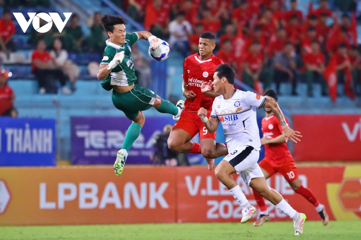 VOV.VN - Thể Công Viettel ngược dòng thắng 2-1 trước Đà Nẵng ở vòng 7 V-League 2025/2026, qua đó có được 15 điểm và chỉ còn cách vị trí nhất bảng của Ninh Bình vỏn vẹn 2 điểm.