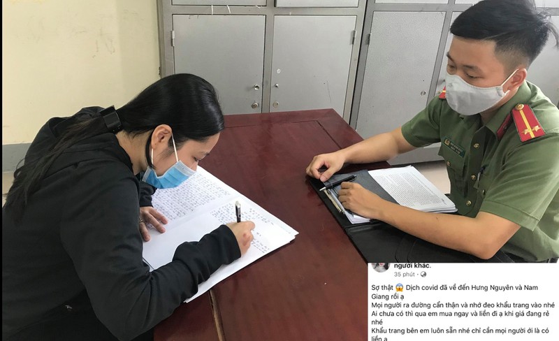 4. Tung tin Nghệ An có Covid-19 để bán khẩu trang: N.T.Y.T. (SN 2001, trú xã Nam Giang, huyện Nam Đàn, Nghệ An) đăng thông tin sai sự thật về dịch Covid-19 trên địa bàn, gây hoang mang trong quần chúng nhân dân. T. thừa nhận việc đăng tải bài viết có nội dung như trên nhằm mục đích câu like, tăng sự tương tác để bán hàng online. Công an huyện Nam Đàn đang tiếp tục củng cố hồ sơ, tài liệu để xử lý theo quy định của pháp luật.