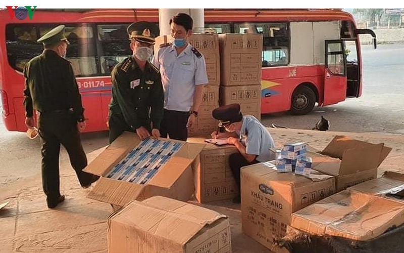 6. Bắt các vụ buôn lậu khẩu trang y tế sang Lào số lượng lớn: Số lượng khẩu trang bị bắt giữ là 65.000 cái. Trong đó, hầu hết số khẩu trang này đều không rõ nguồn gốc. Hiện, Cơ quan chức năng tỉnh Quảng Trị đã xử phạt hành chính và tịch thu số hàng hoá này giao Ban chỉ đạo phòng chống dịch Covid-19 tỉnh để xử lý. Trong ảnh:Lực lượng chức năng tỉnh Quảng Trị bắt giữ nhiều vụ vận chuyển khẩu trang y tế trái phép sang Lào. |