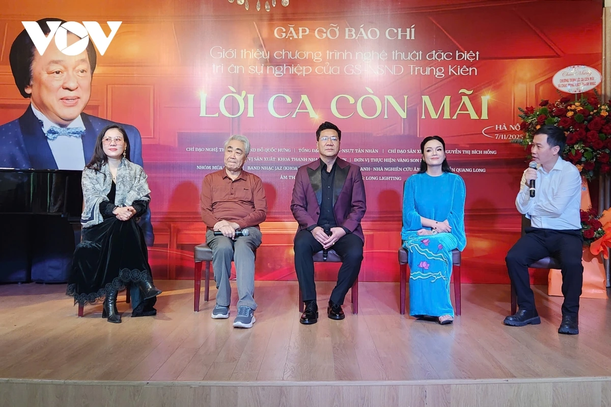 VOV.VN - Khoa Thanh nhạc, Học viện Âm nhạc Quốc gia Việt Nam (HVANQGVN) tổ chức chương trình nghệ thuật đặc biệt “Lời ca còn mãi” nhằm tri ân những cống hiến to lớn của GS.NSND Trung Kiên – người đặt nền móng cho đào tạo thanh nhạc Việt Nam.