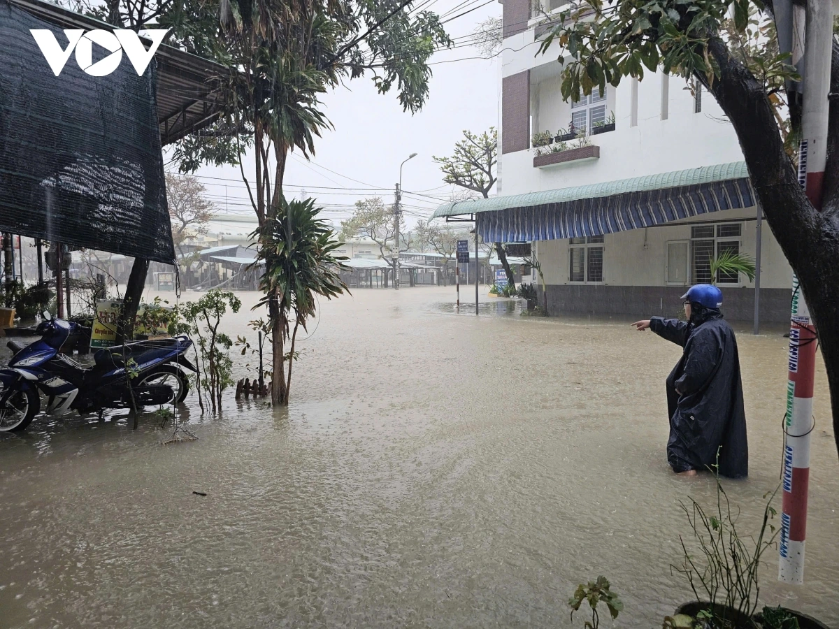Nước lũ dâng nhanh khiến Quy Nhơn và vùng lân cận bị ngập sâu