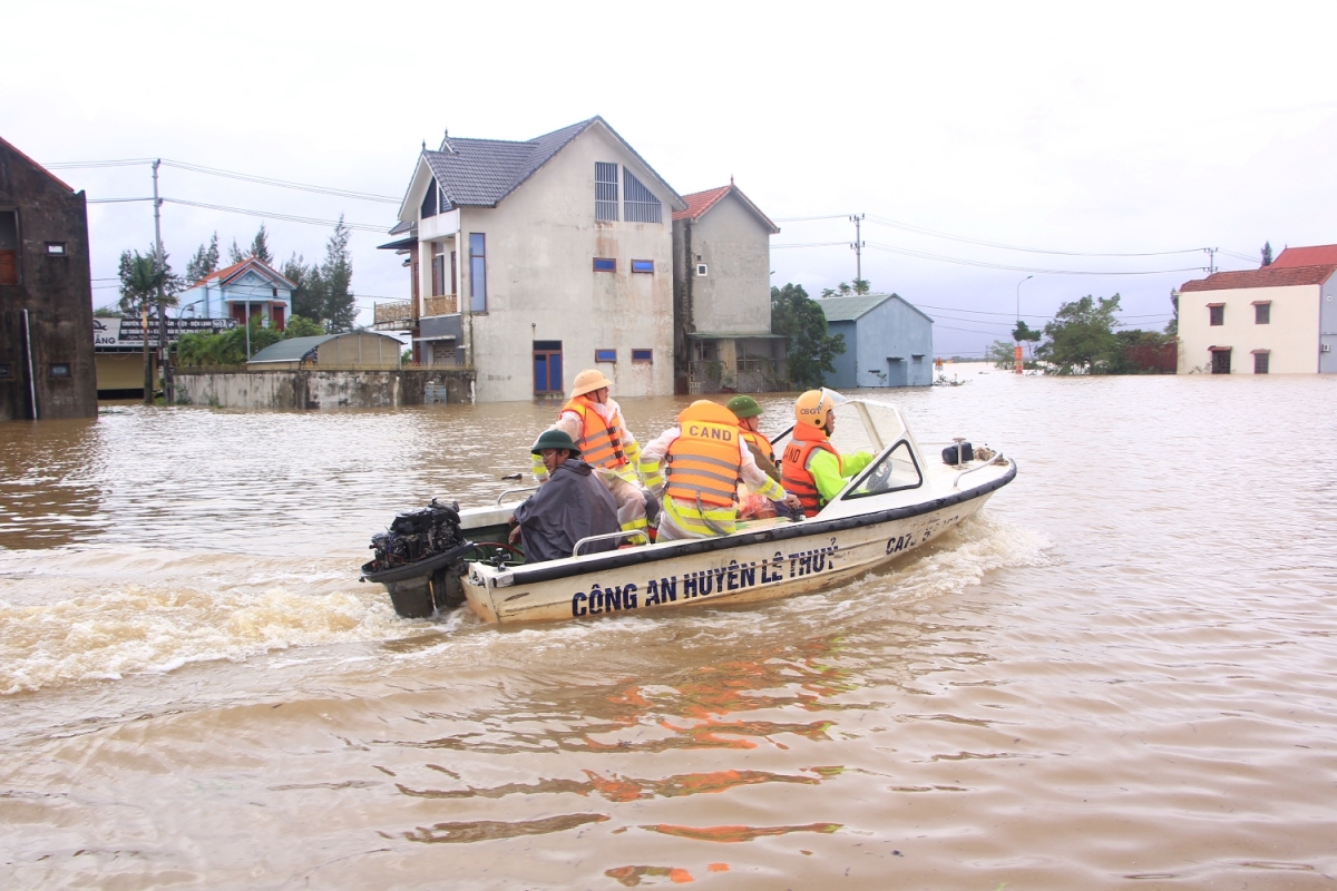 Thượng tá Trần Anh Tuấn, Trưởng Công an huyện Lệ Thủy cho biết, mưa lớn liên tục làm nước lũ lên nhanh, người dân nhiều nơi kêu cứu. Chính quyền địa phương cùng Công an huyện và lực lượng tại chỗ đã có mặt kịp thời giúp đỡ bà con. Mưa lớn vẫn đang tiếp diễn và chưa có dấu hiệu dừng lại, số hộ bị ngập lụt sẽ còn tăng cao. Theo Thượng tá Trần Anh Tuấn, hiện nay, Công an huyện Lệ Thủy huy động 100% quân số sẵn sàng giúp người dân di dời, ứng phó tình huống khẩn cấp.