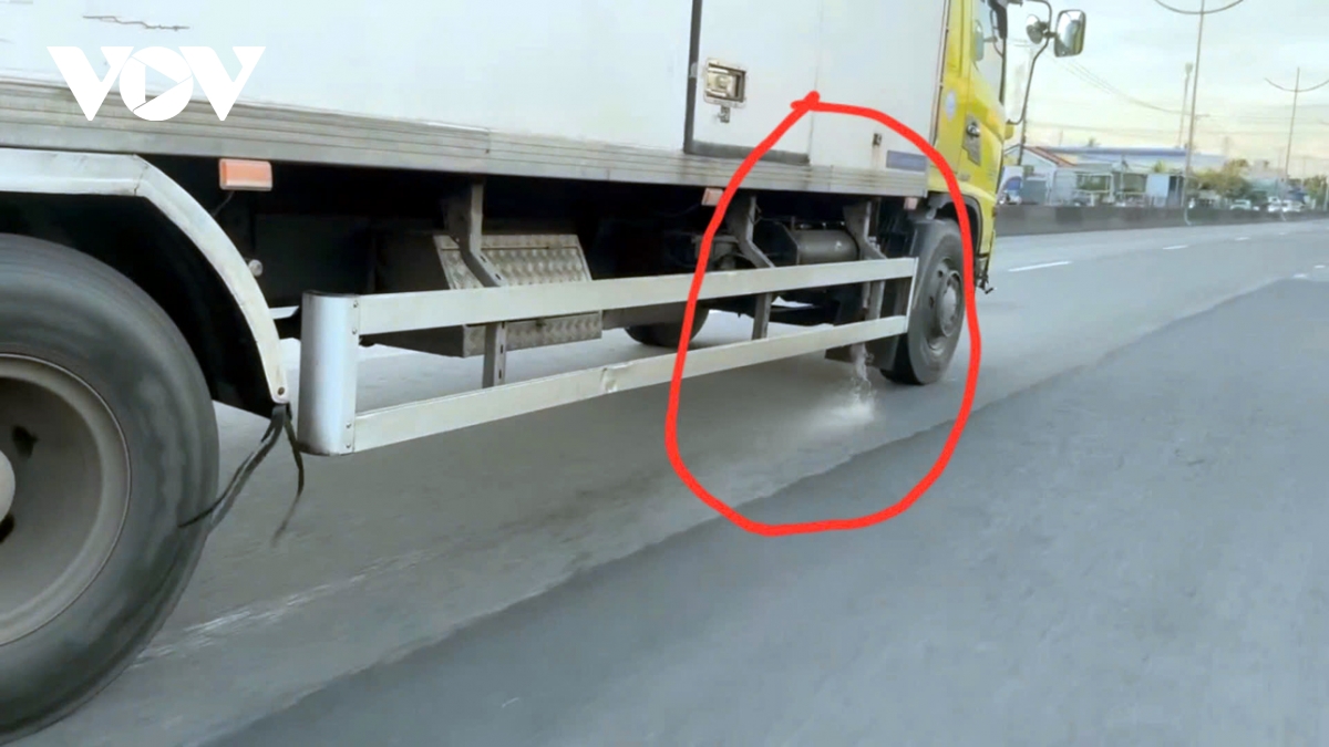 VOV.VN - Vòi nước trên ô tô đông lạnh tuôn xả nước thải hôi thối kéo dài xuống mặt đường và văng tung toé đã trúng vào mặt, vào người đi xe gắn máy.