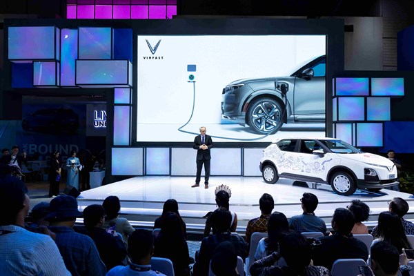 VOVVN - VOV.VN - VinFast Auto lần đầu tiên giới thiệu đến thị trường dải xe điện tay lái nghịch trong khuôn khổ sự kiện Triển lãm Ô tô Quốc tế Indonesia (IIMS) 2024.