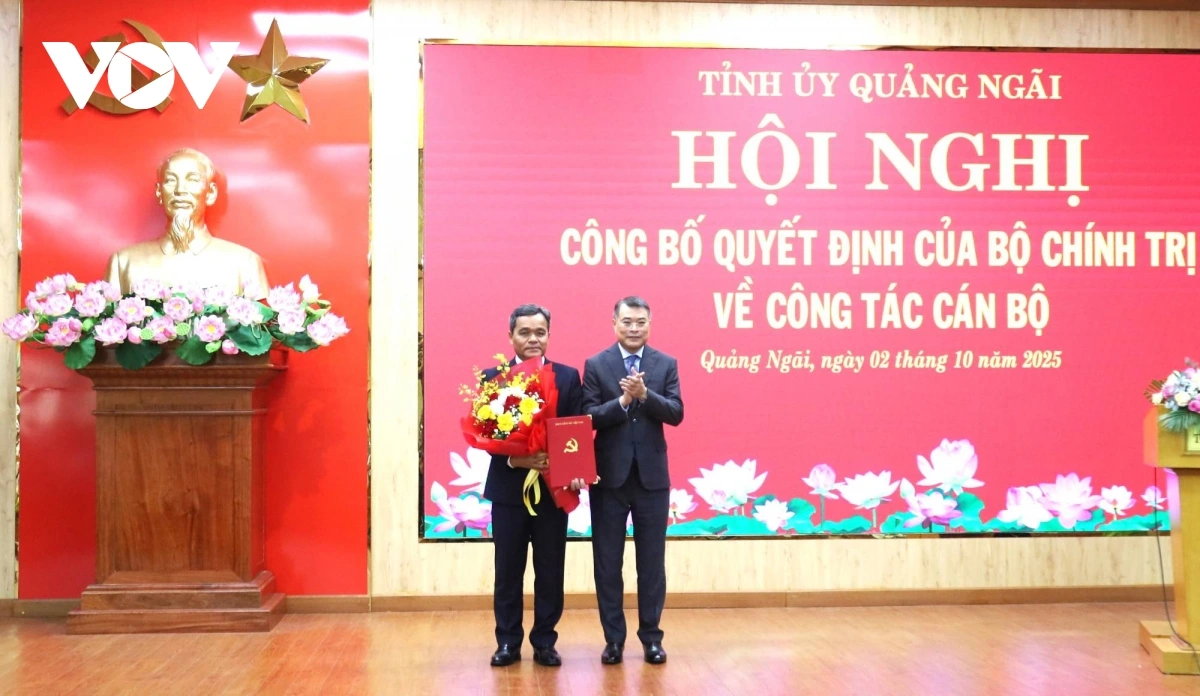 VOV.VN - Bộ Chính trị vừa có quyết định điều động, phân công, chỉ định ông Hồ Văn Niên, Thứ trưởng Thường trực Bộ Dân tộc và Tôn giáo tham gia Ban Chấp hành, Ban Thường vụ, giữ chức Bí thư Tỉnh ủy Quảng Ngãi nhiệm kỳ 2025-2030 thay bà Bùi Thị Quỳnh Vân vừa nhận nhiệm vụ Phó Trưởng Ban Tổ chức Trung ương.