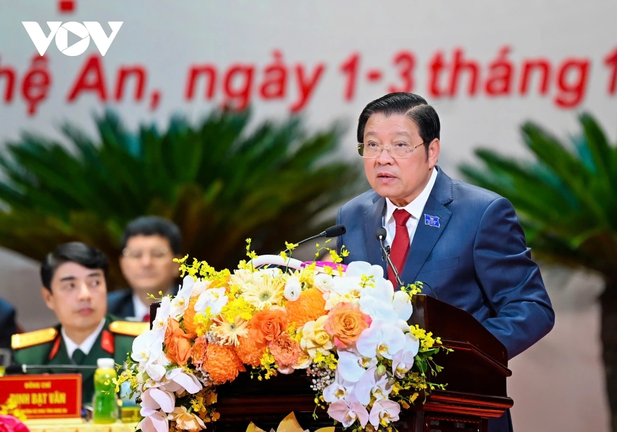 Cần phải thống nhất nhận thức, khơi dậy mạnh mẽ khát vọng phát triển, đổi mới mạnh mẽ tư duy và hành động, mạnh dạn bước ra khỏi quán tính phát triển cũ, tạo sức bật mới cho Nghệ An; yếu tố quyết định nhất để biến Nghị quyết Đại hội thành hiện thực là con người, gắn với tổ chức bộ máy, mà trước hết là cán bộ lãnh đạo, quản lý các cấp; phải chú trọng xây dựng Đảng bộ và hệ thống chính trị tỉnh Nghệ An thực sự trong sạch, vững mạnh, tiêu biểu về mọi mặt. Đây là nhiệm vụ then chốt.