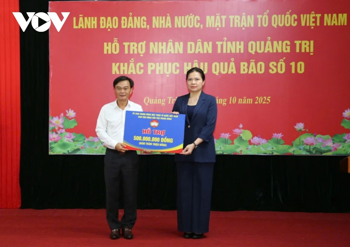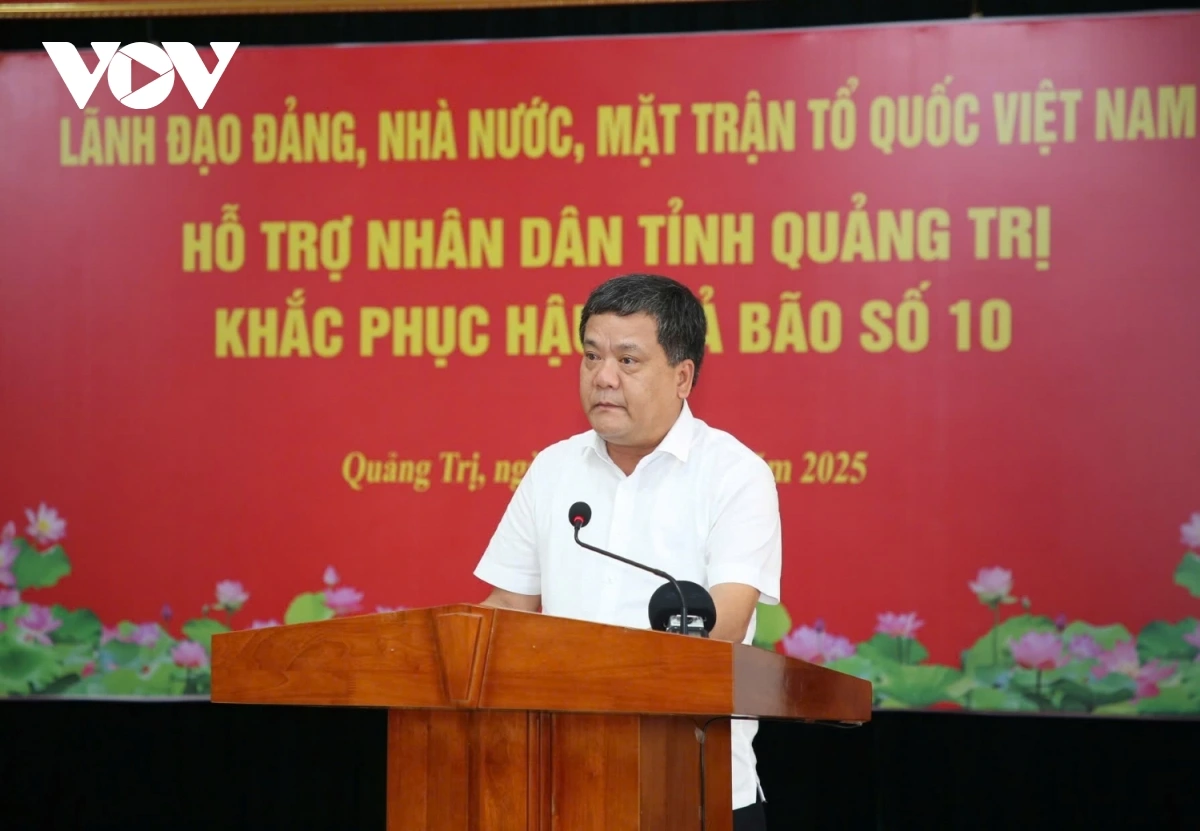 Dịp này, Thường trực Ban Bí thư Trần Cẩm Tú đã trao nguồn hỗ trợ của lãnh đạo Đảng, Nhà nước cho Đảng bộ, chính quyền và nhân dân tỉnh Quảng Trị để khắc phục hậu quả bão số 10 với số tiền 500 triệu đồng; Ủy ban Trung ương Mặt trận Tổ quốc Việt Nam trao 500 triệu đồng của Ban vận động cứu trợ Trung ương hỗ trợ tỉnh Quảng Trị; Tập đoàn công nghiệp năng lượng quốc gia Việt Nam trao 5 tỷ đồng; Ngân hàng TMCP Đầu tư và Phát triển Việt Nam trao 1 tỷ đồng; Ngân hàng Thương mại Cổ phần Công Thương Việt Nam trao 1 tỷ đồng giúp tỉnh Quảng Trị khắc phục hậu quả bão số 10.