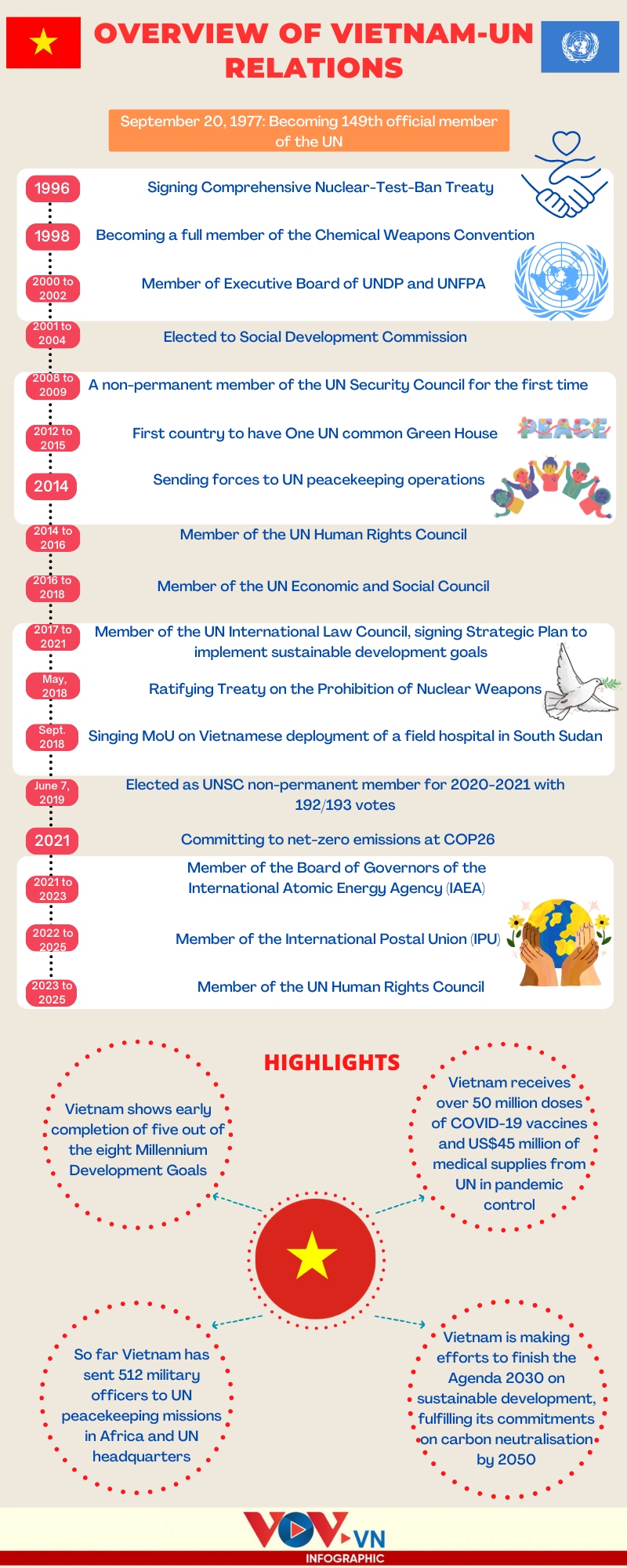 VOV.VN - Since officially becoming the 149th member of the UN on September 20, 1977, Vietnam has always been a trustworthy partner and an active member of the organisation, making numerous important contributions to UN missions.