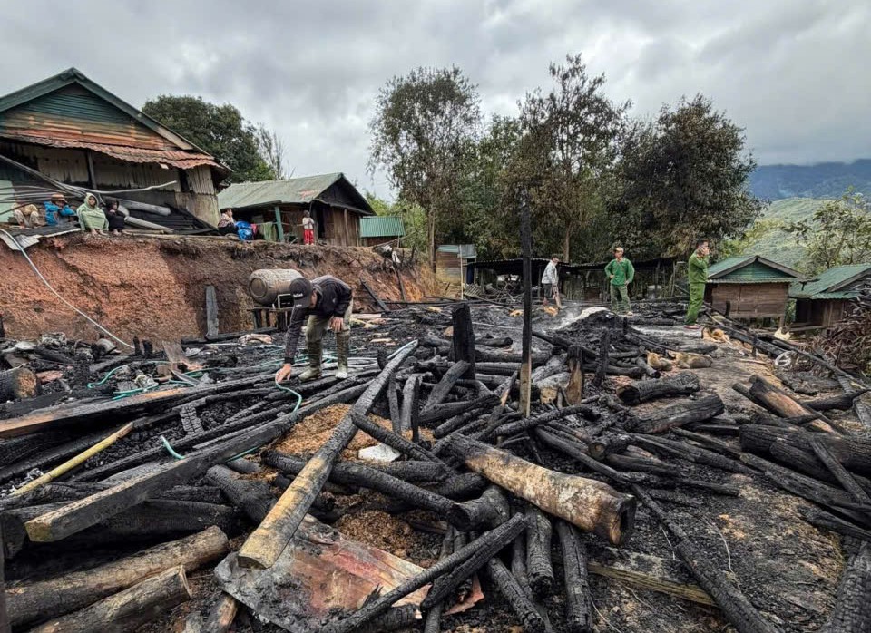 Cháy lớn thiêu rụi 2 căn nhà của đồng bào Xơ Đăng ở miền núi Quảng Ngãi