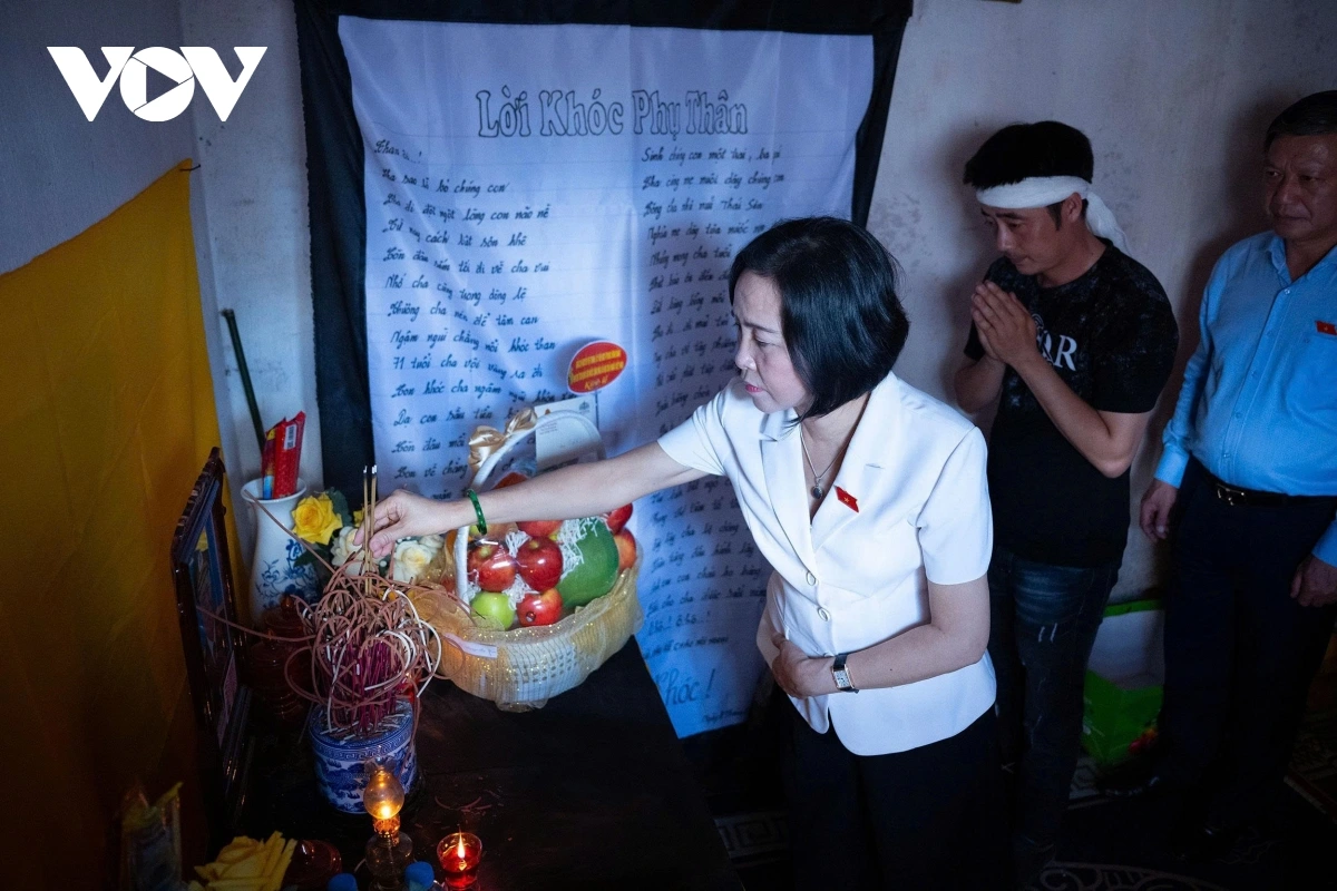 Phó Chủ tịch Quốc hội Nguyễn Thị Thanh thắp hương, chia buồn, động viên gia đình nạn nhân tử vong do bão số 10 tại Ninh Bình