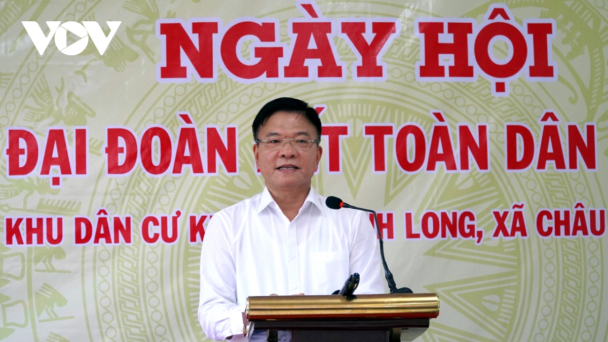 VOV.VN - Chiều nay (14/11), Phó Thủ tướng Chính phủ Lê Thành Long, Ủy viên Ban Chấp hành Trung ương Đảng đã đến dự và phát biểu tại Ngày hội Đại đoàn kết toàn dân tộc tại khu phố Minh Long, xã Châu Thành, tỉnh An Giang.