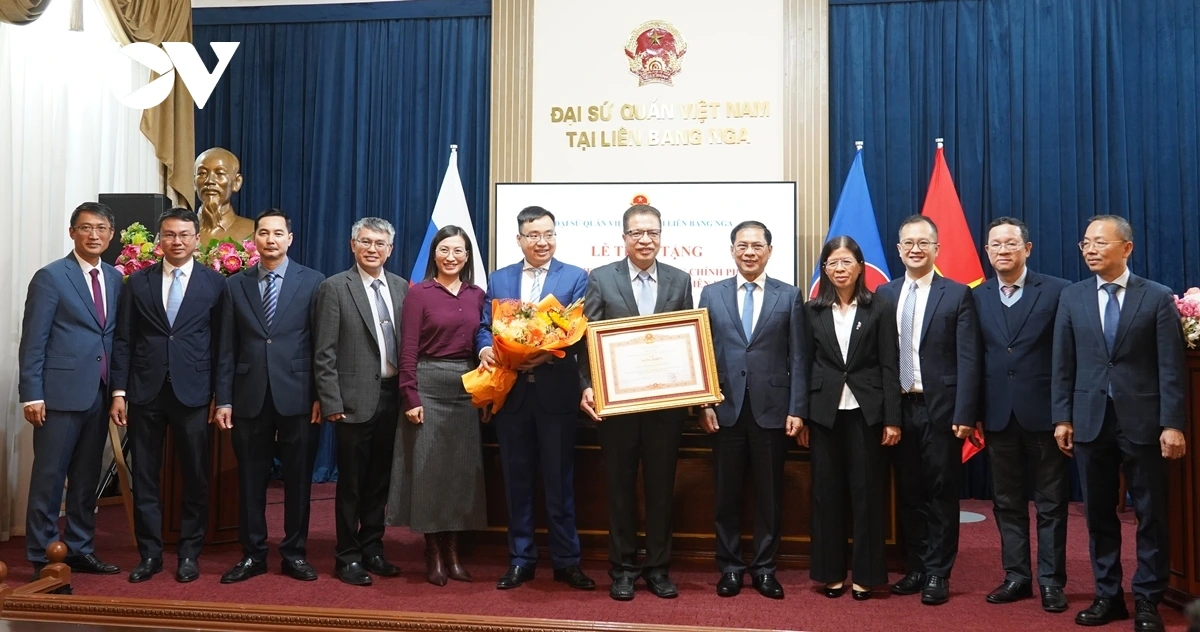 Phó Thủ tướng ghi nhận, biểu dương nỗ lực của tập thể nhân viên, cán bộ của Đại sứ quán Việt Nam và các cơ quan bên cạnh tại LB Nga, đồng thời, thay mặt Thủ tướng Chính phủ trao tặng Bằng khen cho tập thể Đại sứ quán Việt Nam tại LB Nga vì những đóng góp tích cực cho sự phát triển tốt đẹp mối quan hệ hữu nghị giữa Việt Nam và LB Nga.