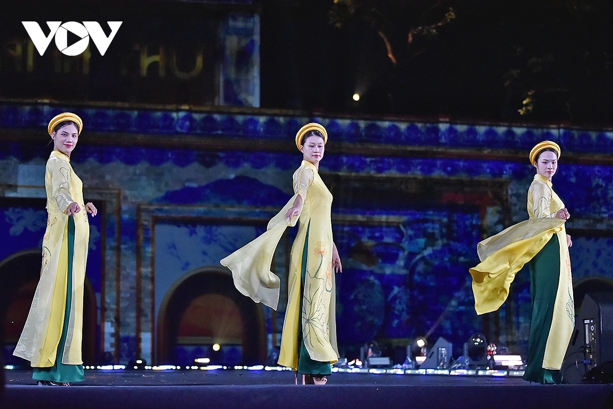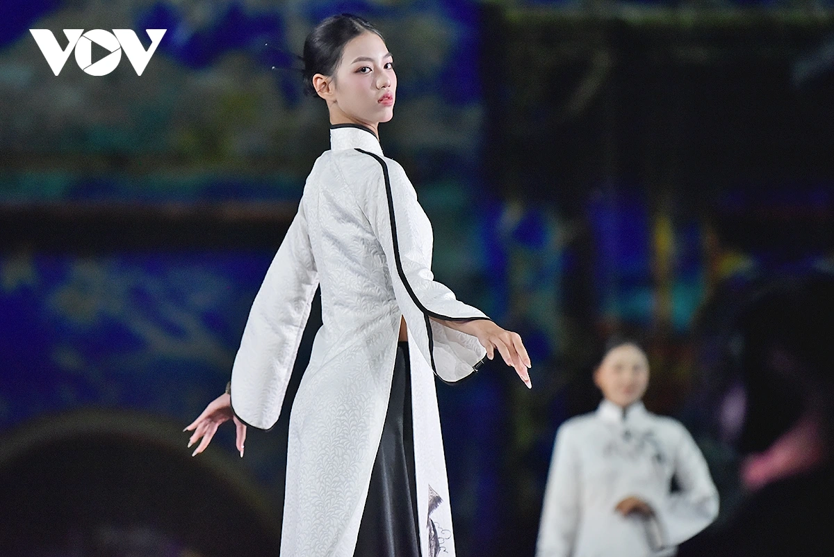 Phu nhân các đại sứ duyên dáng trình diễn áo dài tại Hoàng Thành Thăng Long
