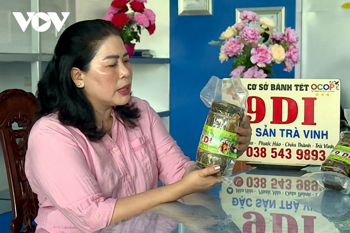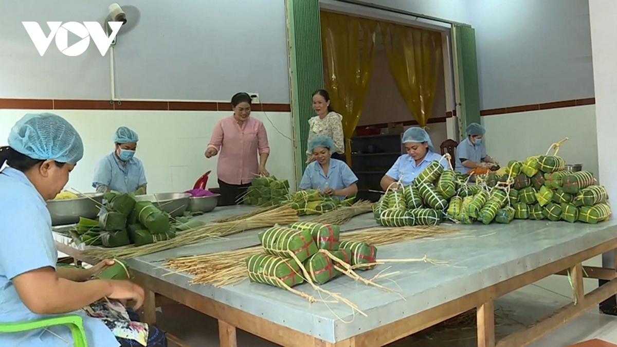 Còn chị Thạch Thị Di, xã Phước Hảo, huyện Châu Thành là một trong những phụ nữ khởi nghiệp thành công với nghề làm bánh tét truyền thống được mẹ chị truyền lại.