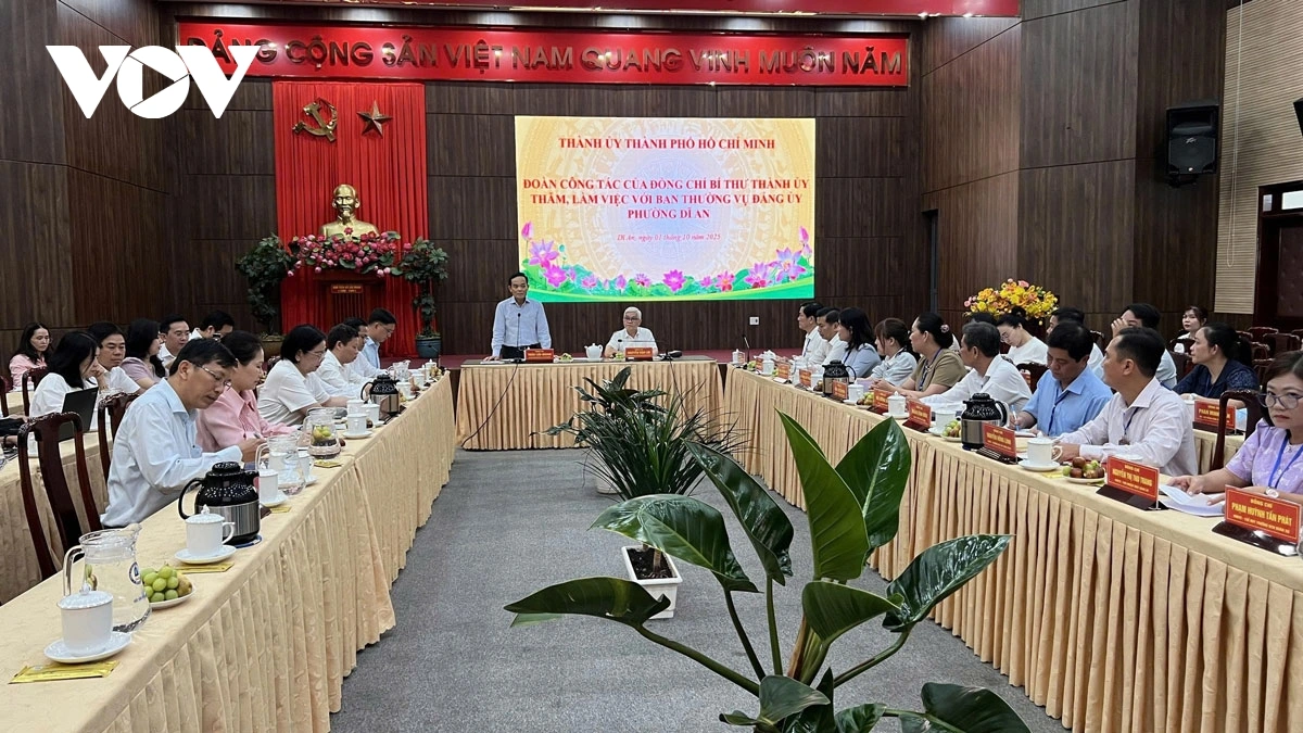 VOV.VN - Ngày 1/10, Bí thư Thành ủy TP.HCM Trần Lưu Quang đã có buổi khảo sát và làm việc tại phường Dĩ An-một trong những địa phương có tốc độ đô thị hóa nhanh và quy mô dân số lớn nhất của TP.HCM.
