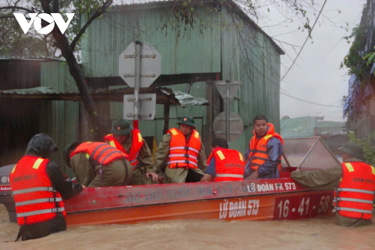 Nước lũ dâng nhanh khiến Quy Nhơn và vùng lân cận bị ngập sâu