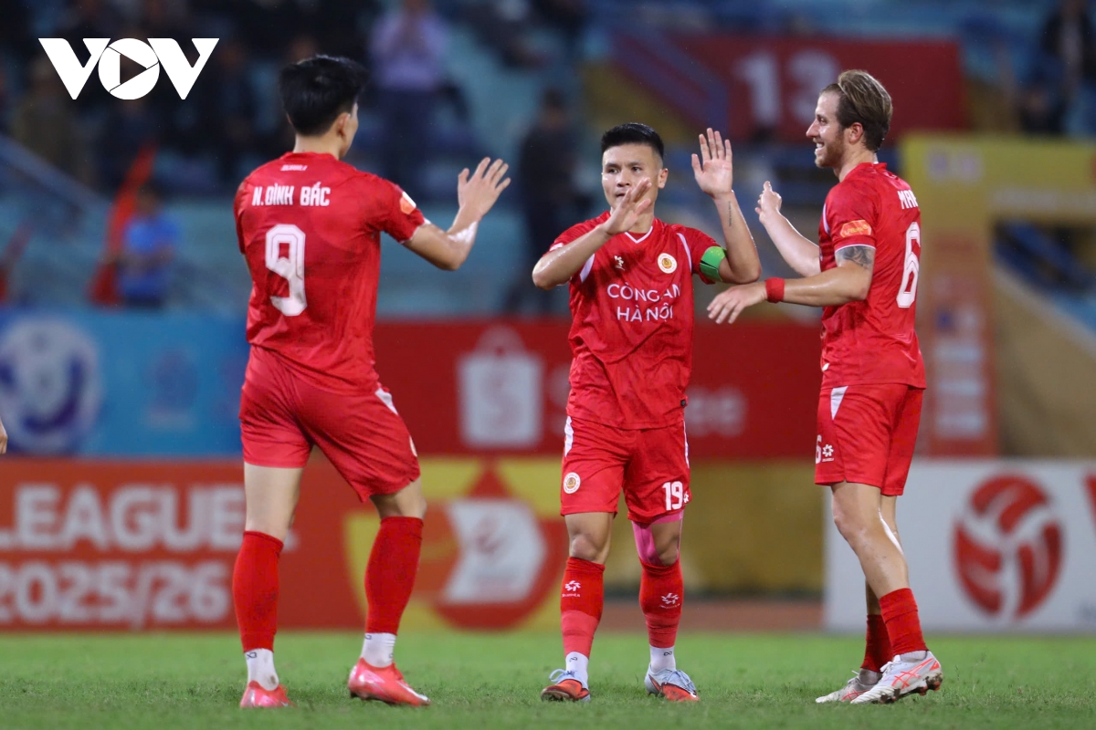 VOV.VN - Quang Hải ghi bàn thắng đẹp mắt giúp CAHN giành chiến thắng 3-0 trước Hà Tĩnh trong trận đấu muộn vòng 11 V-League 2025/2026 diễn ra trên sân Hàng Đẫy tối 10/11.