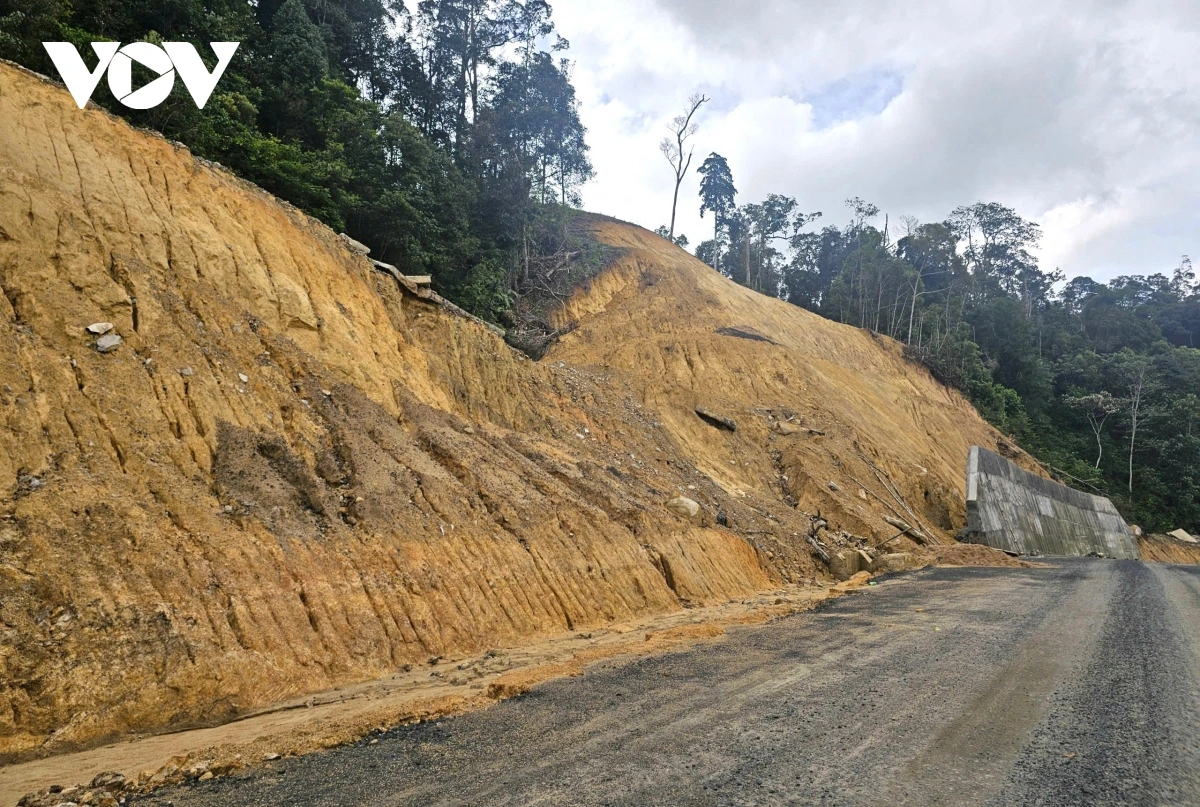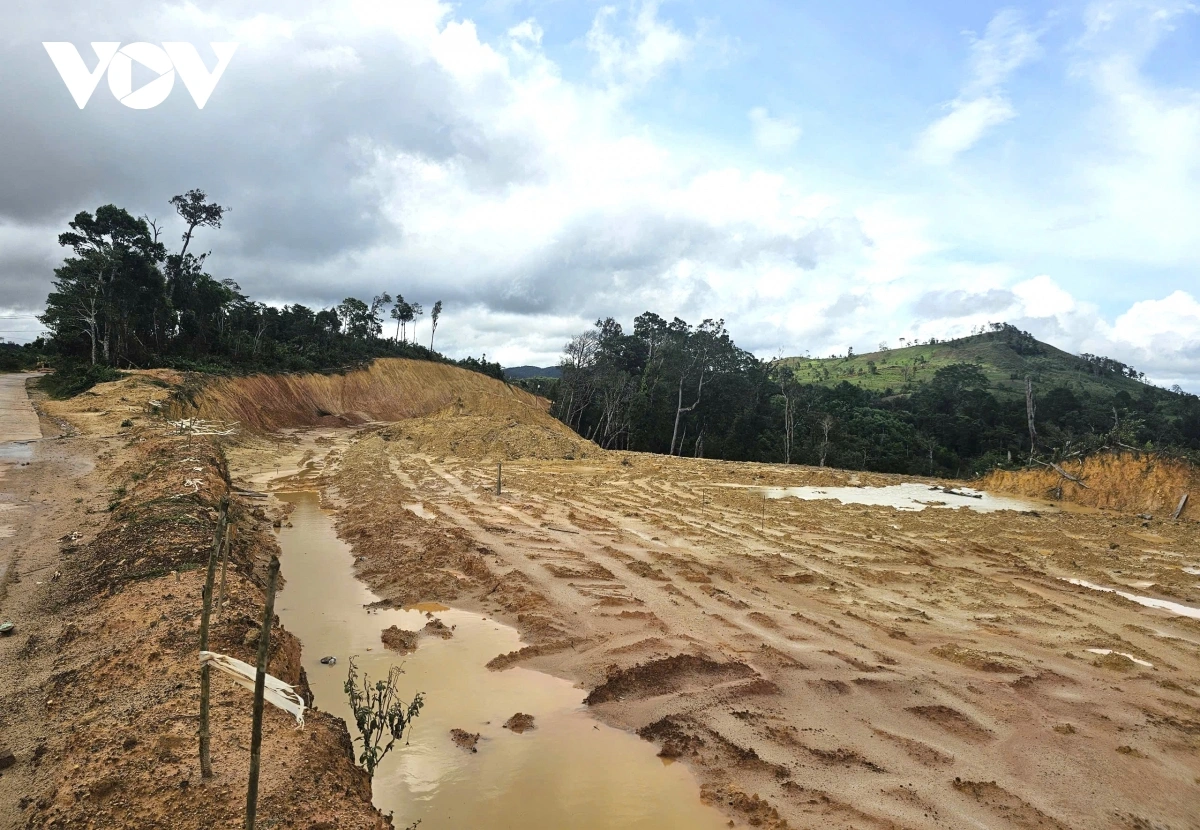 VOV.VN - Dự án cải tạo, nâng cấp tỉnh lộ 676 qua các xã Măng Đen, Măng Bút, tỉnh Quảng Ngãi đang được triển khai thi công. Thời gian này liên tục có mưa, nhiều vị trí taluy dương cao, đất tràn ra mạt đường tiềm ẩn nguy cơ mất an toàn giao thông.