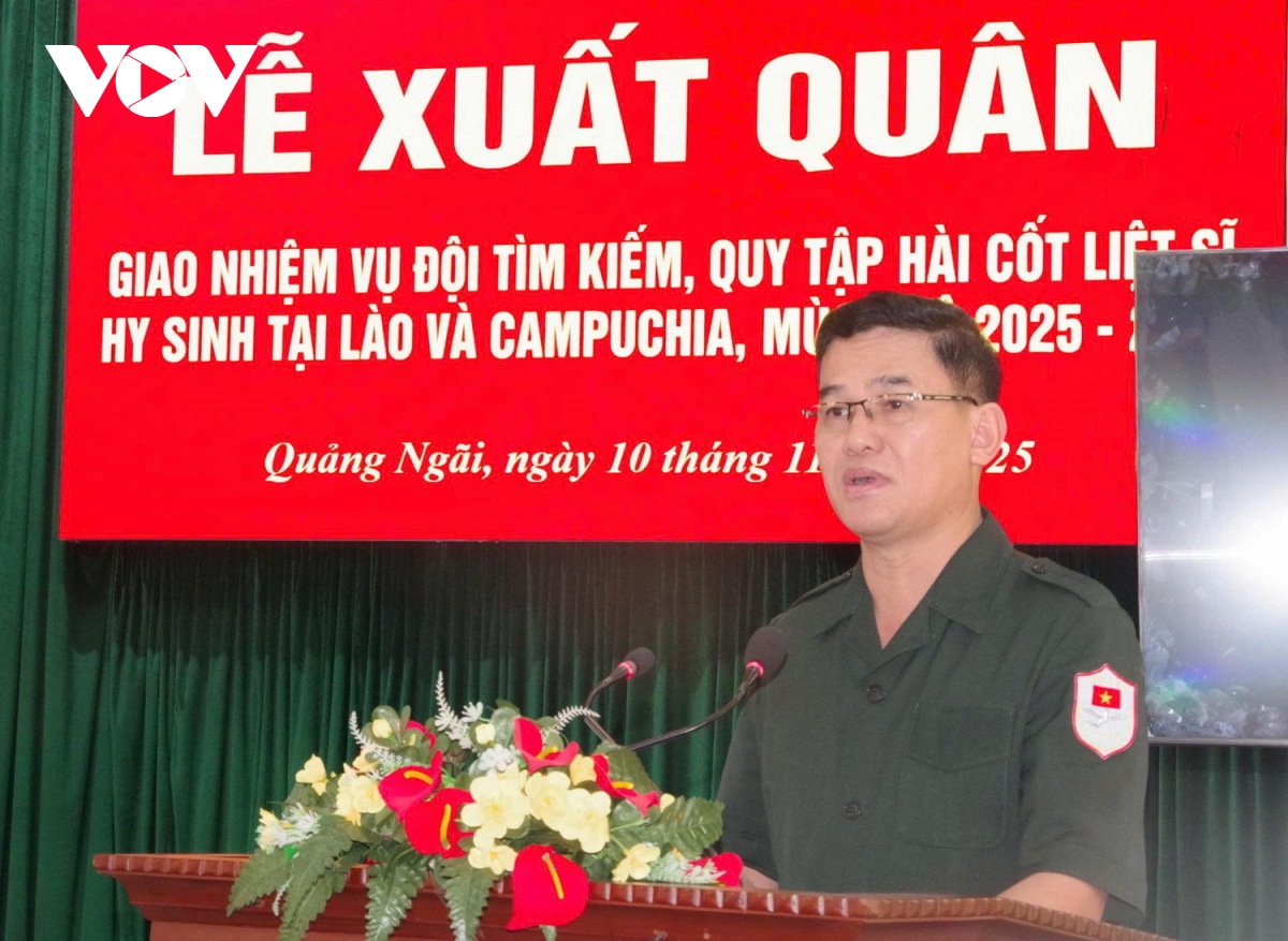 VOV.VN - Sáng nay (10/11), tại phường Kon Tum, Ban Chỉ đạo về tìm kiếm, quy tập và xác định danh tính hài cốt liệt sĩ (còn gọi Ban chỉ đạo 515) tỉnh Quảng Ngãi tổ chức lễ xuất quân tìm kiếm quy tập hài cốt liệt sỹ tại Lào và Campuchia mùa khô năm 2025 - 2026.