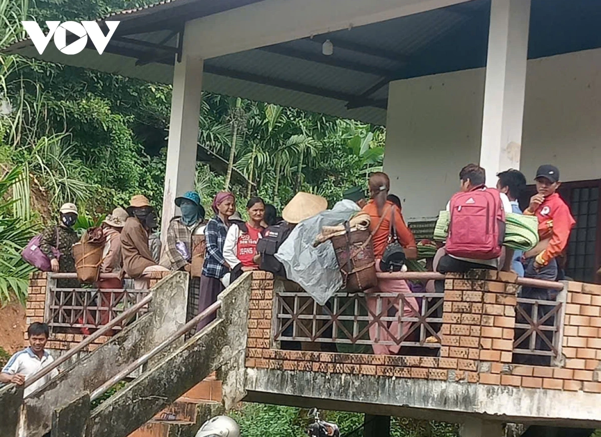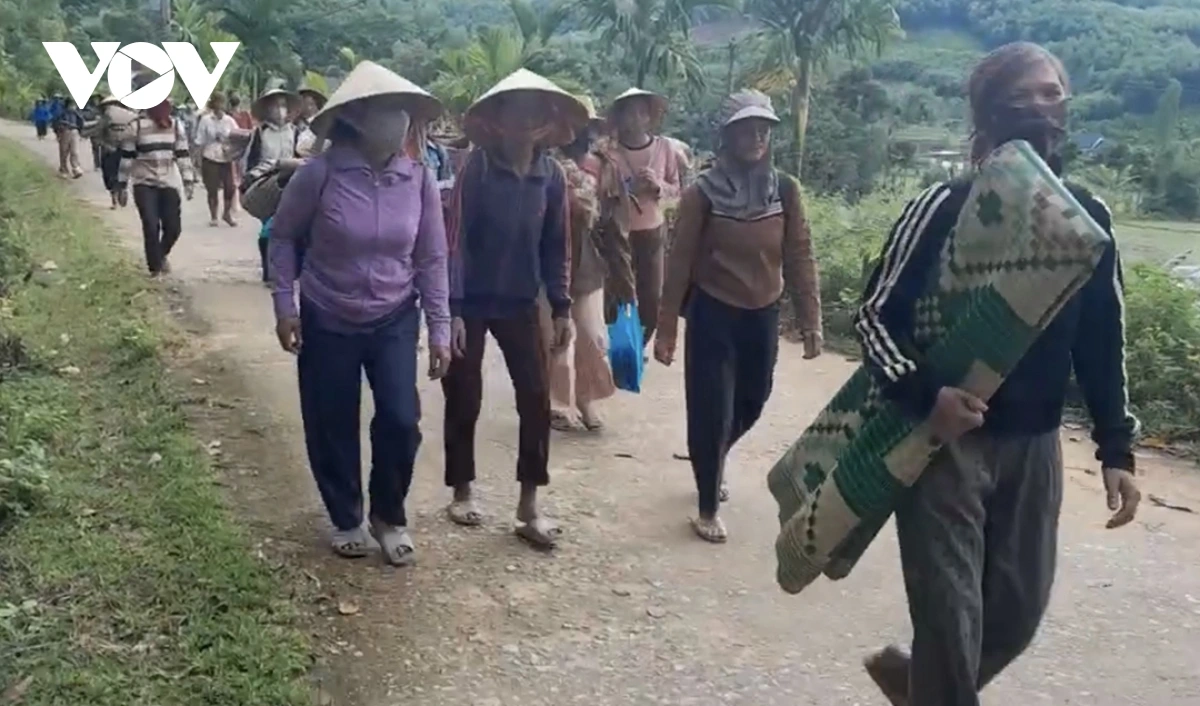 VOV.VN - Lo sợ mưa lớn do ảnh hưởng cơn bão số 12, chiều qua (21/10), 61 hộ dân với hơn 200 người sống dưới chân núi Gò Oát, thôn Ba Lang, xã Ba Vinh, tỉnh Quảng Ngãi đã dọn đồ đạc, đến nhà văn hóa thôn để tránh lũ.