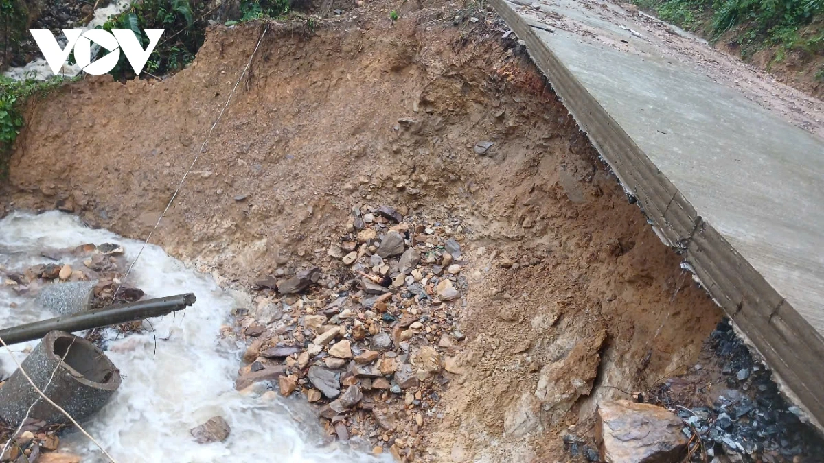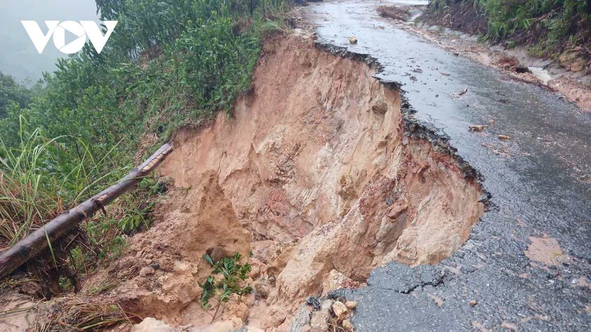 VOV.VN - Mưa lớn kéo dài nhiều ngày qua tại miền núi tỉnh Quảng Ngãi gây ra sạt lở đất nghiêm trọng, ngập lụt, cô lập nhiều xã, làm hư hỏng cầu, đường và nhà dân. Hàng chục hộ dân đã được sơ tán khẩn cấp, nhiều đường thôn, đường xã ở miền núi sạt lở, ách tắc giao thông.