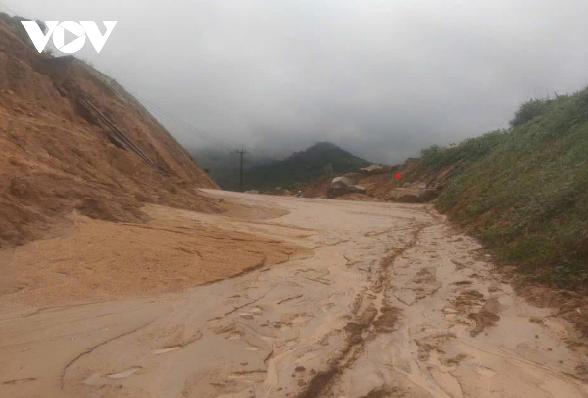 Mưa lớn những ngày qua cũng làm nhiều Quốc lộ, Tỉnh lộ, đường huyện ở tỉnh Quảng Ngãi bị sạt lở. Tại các xã miền núi tỉnh Quảng Ngãi, nhiều tuyến giao thông tiếp tục bị ách tắc. Đường huyện 83 bị sạt lở từ đợt mưa trước đến nay vẫn chưa được khắc phục. Nghiêm trọng nhất, tại Km8+200 đoạn qua thôn Tà Vinh, xã Sơn Tây Hạ (huyện Sơn Tây cũ) sạt lở taluy dương dài khoảng 50m và taluy âm khoảng 40m khiến nền đường đứt gãy hoàn toàn. Địa phương phải vận chuyển hàng cứu trợ bằng ròng rọc tự chế hoặc mở lối tạm băng núi dài hơn 1km, trơn trượt, đi lại rất khó khăn.