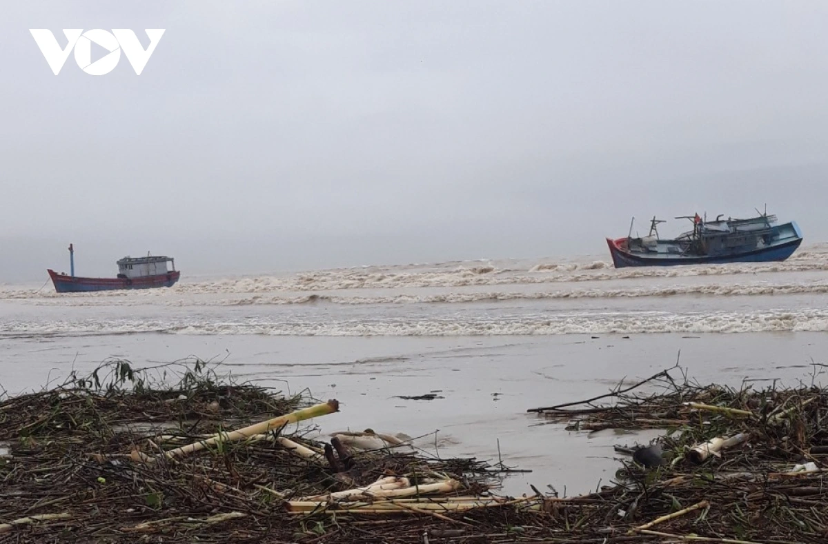 Quảng Ngãi: Nhiều tàu cá bị bứt neo trôi dạt do mưa lũ
