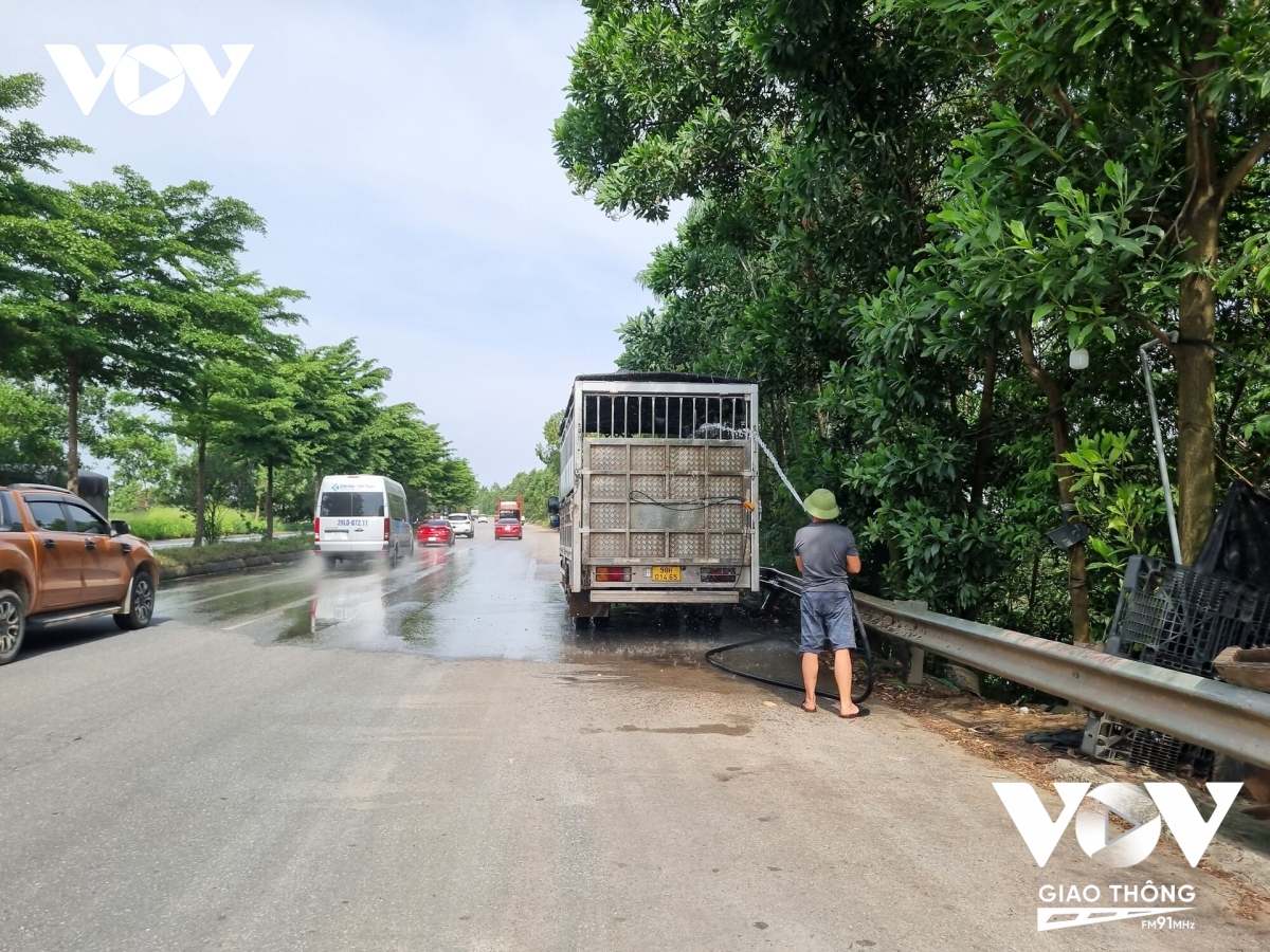 Theo phản ánh của thính giả, dịch vụ tắm lợn còn xuất hiện trên đường cao tốc Hà Nội - Bắc Giang, đoạn qua xã Ninh Hiệp, huyện Gia Lâm.