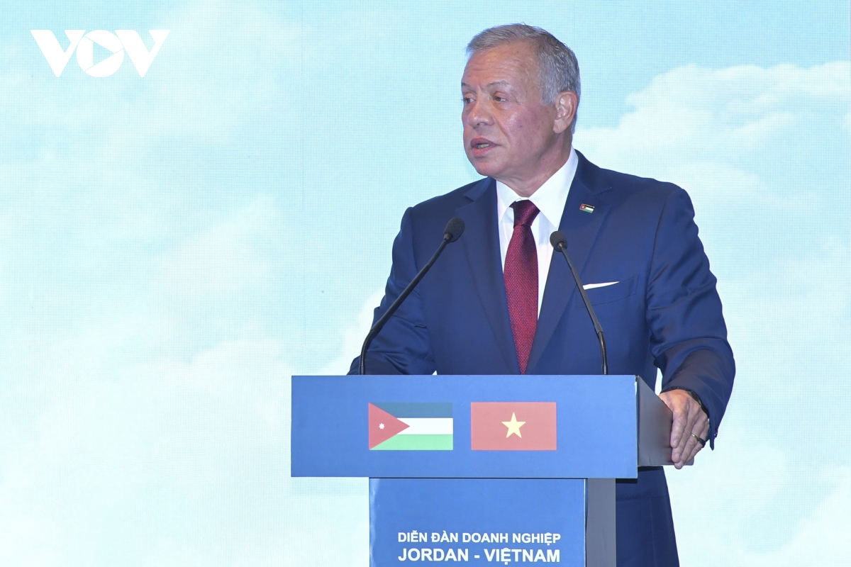 "Với vị trí chiến lược của Jordan, các FTA và sự phát triển của Việt Nam, chúng ta có thể tạo nên cầu nối kinh tế kết nối Đông Nam Á với Châu Âu, Trung Đông và Châu Phi. Chúng ta hãy đảm bảo rằng động lực của diễn đàn này, cùng các chuyến thăm và trao đổi trong những ngày tới, sẽ đưa chúng ta đến mối quan hệ đối tác lâu dài và cùng chia sẻ thịnh vượng", Quốc vương Abdullah II nhấn mạnh.