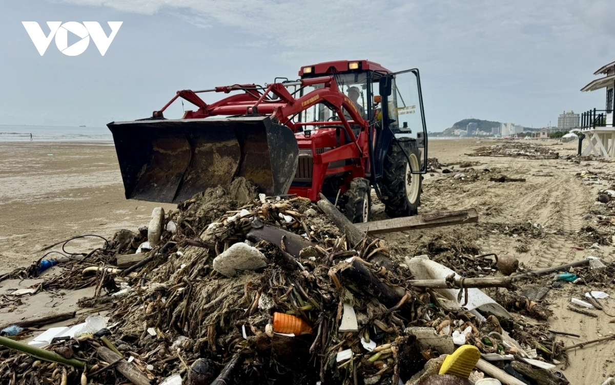 VOV.VN - Những ngày qua, lượng rác đại dương tràn vào các bãi tắm ở phường Vũng Tàu và Tam Thắng (tỉnh Bà Rịa- Vũng Tàu cũ), TP.HCM, chưa có dấu hiệu dừng lại. Để đảm bảo an toàn cho người dân, du khách tắm biển, đơn vị chức năng và doanh nghiệp tăng cường nhân công và máy móc để cào rác mỗi ngày.