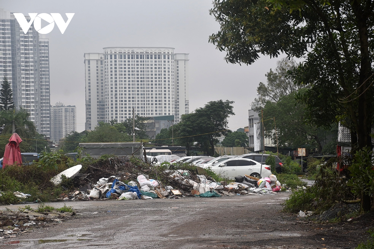 Khu vực đầu tuyến đường Minh Khai – Yên Duyên – Vĩnh Tuy ngổn ngang, rác thải phủ kín nhiều điểm, tạo nên một mảng màu xám xịt giữa khu dân cư đông đúc.