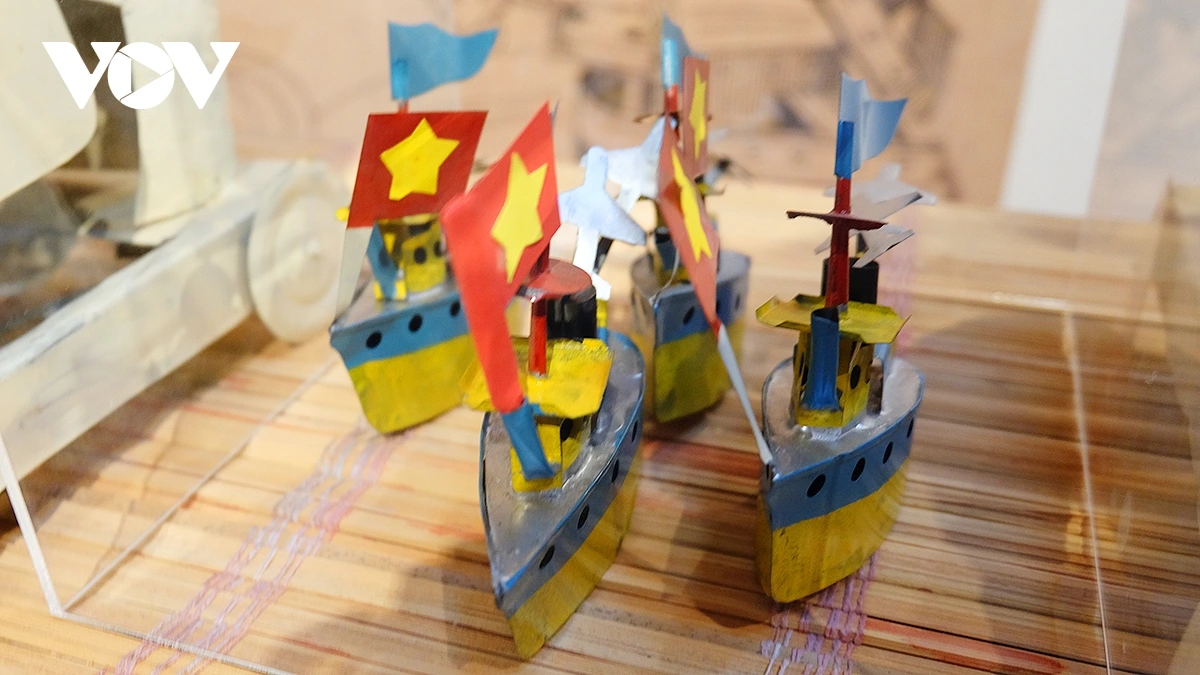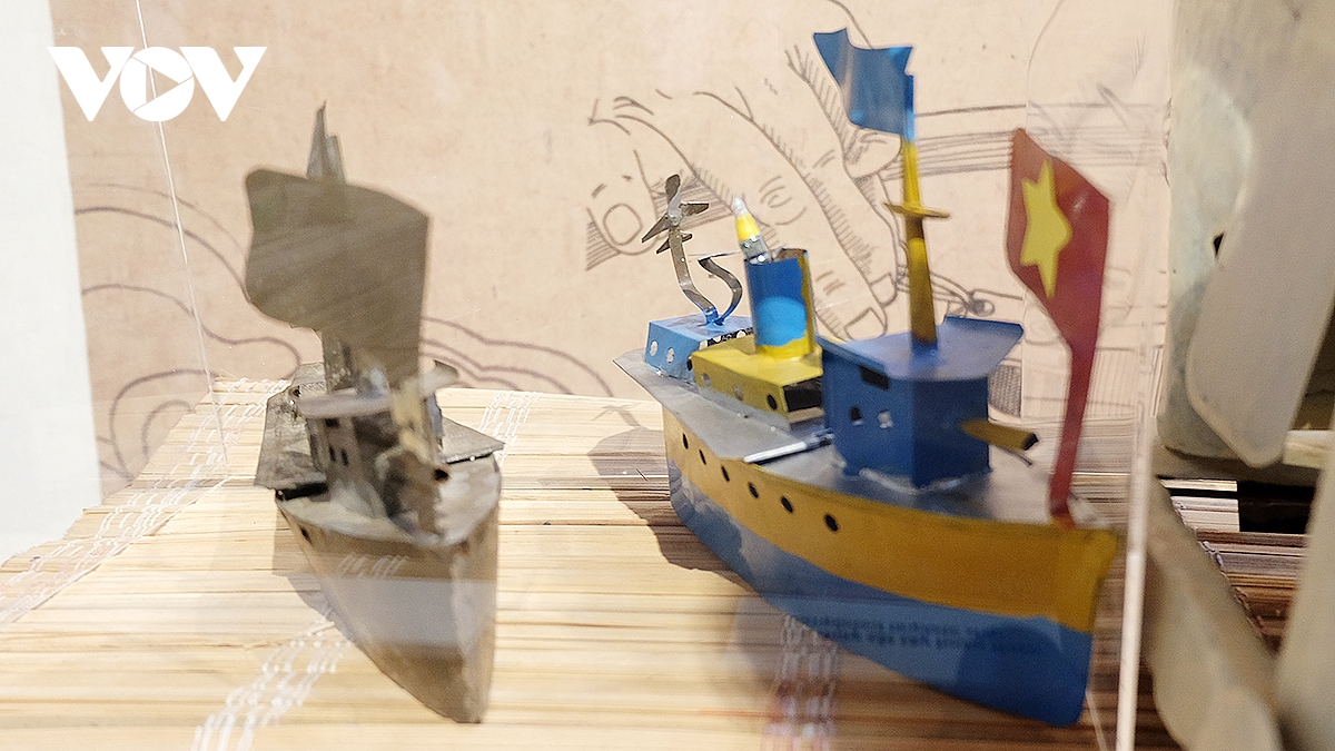 Chương trình cũng tái hiện không gian trải nghiệm Tết Trung thu với nhiều món đồ chơi truyền thống quen thuộc như: đèn kéo quân, đèn ông sao, đèn cù, ông tiến sĩ giấy, tò he, mặt nạ giấy bồi, phỗng đất, con giống bột... Trong ảnh, tàu thủy làm từ sắt tây, món đồ chơi gần gũi vào dịp Tết Trung thu của nhiều thế hệ người Hà Nội.