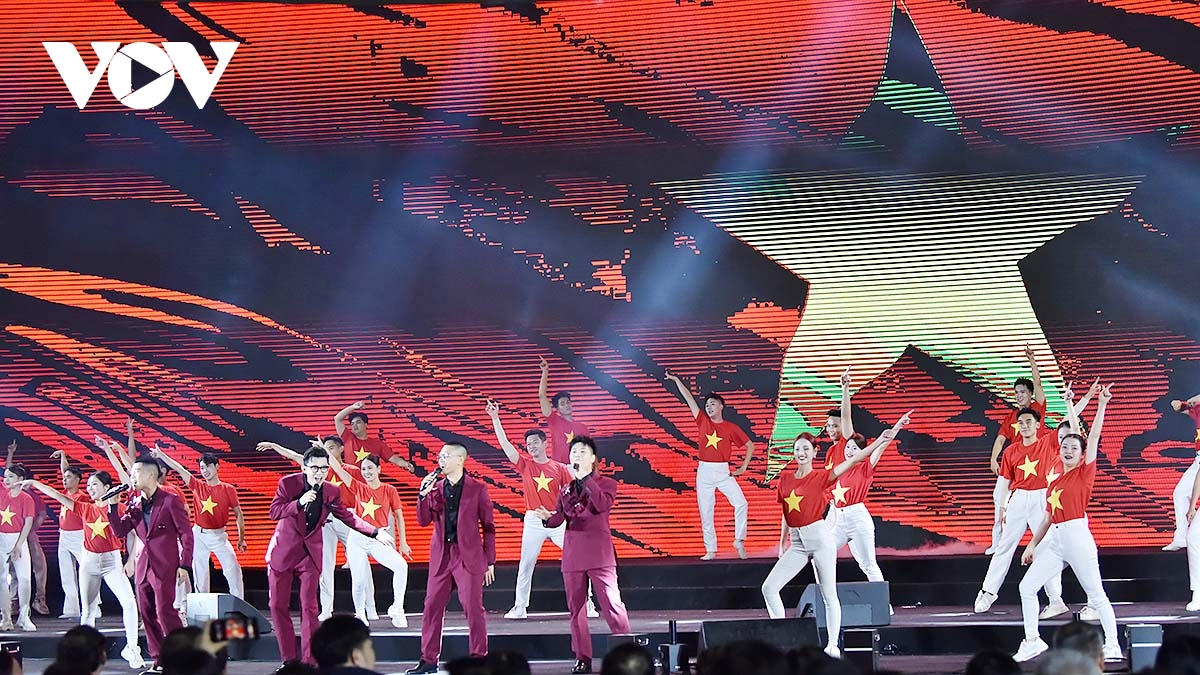 Ca khúc “Việt Nam ơi” do nhóm Nhóm Oplus, Vũ đoàn TA và Vũ đoàn PL thể hiện khép lại chương trình nghệ thuật đêm khai mạc Hội chợ Mùa Thu lần thứ nhất - 2025.