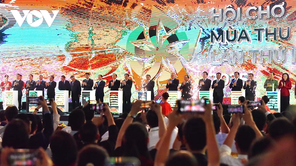 VOV.VN - Tối 25/10, tại Trung tâm Triển lãm Việt Nam (VEC), Hà Nội, lễ khai mạc Hội chợ Mùa Thu lần thứ nhất - 2025 đã chính thức khai mạc. Hội chợ do Bộ Công Thương chủ trì, phối hợp với Bộ Văn hóa, Thể thao và Du lịch, UBND TP Hà Nội cùng các Bộ, ngành và địa phương tổ chức.
