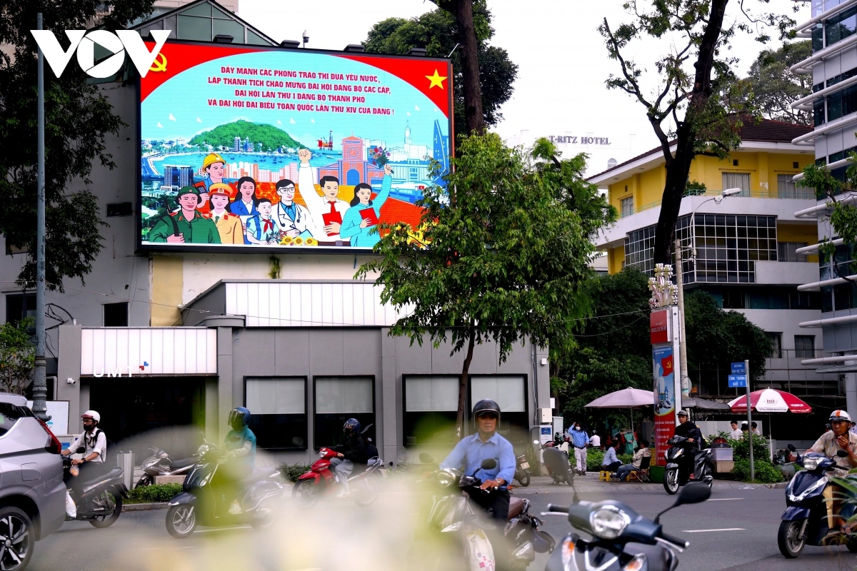 Mỗi góc phố, mỗi con đường đều trở thành không gian truyền tải thông điệp về quyết tâm, đổi mới và sáng tạo, sẵn sàng cho một nhiệm kỳ mới đầy thành công của Đảng bộ, chính quyền và nhân dân TP.HCM.