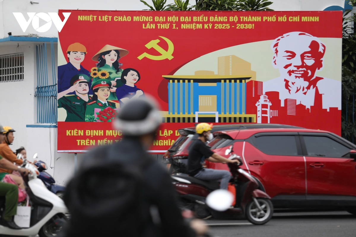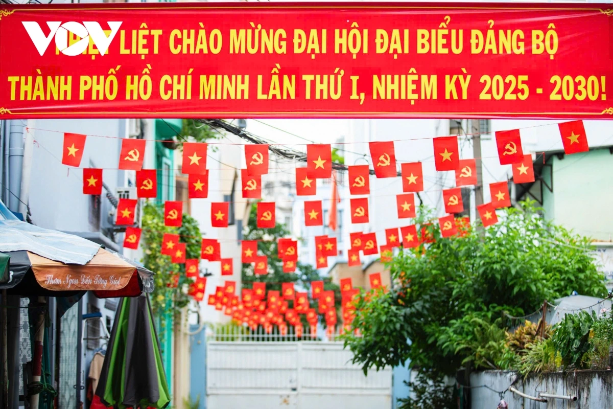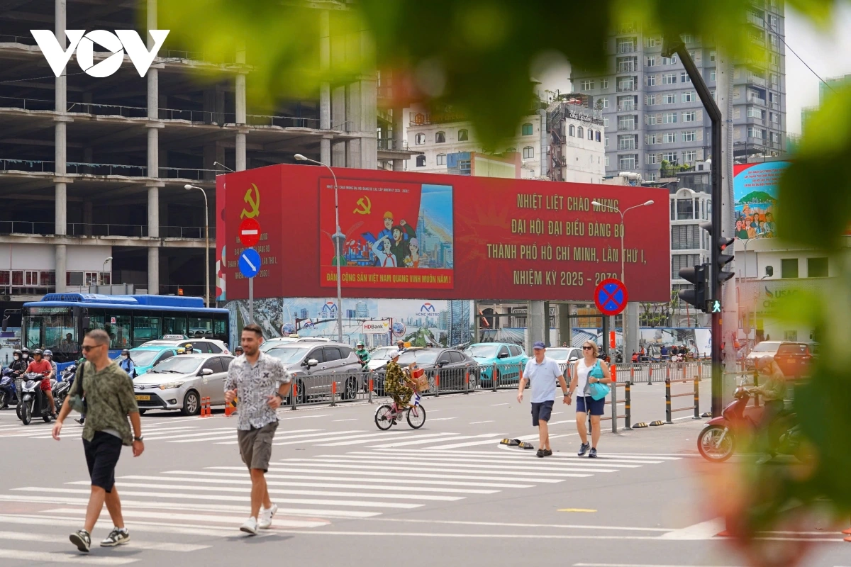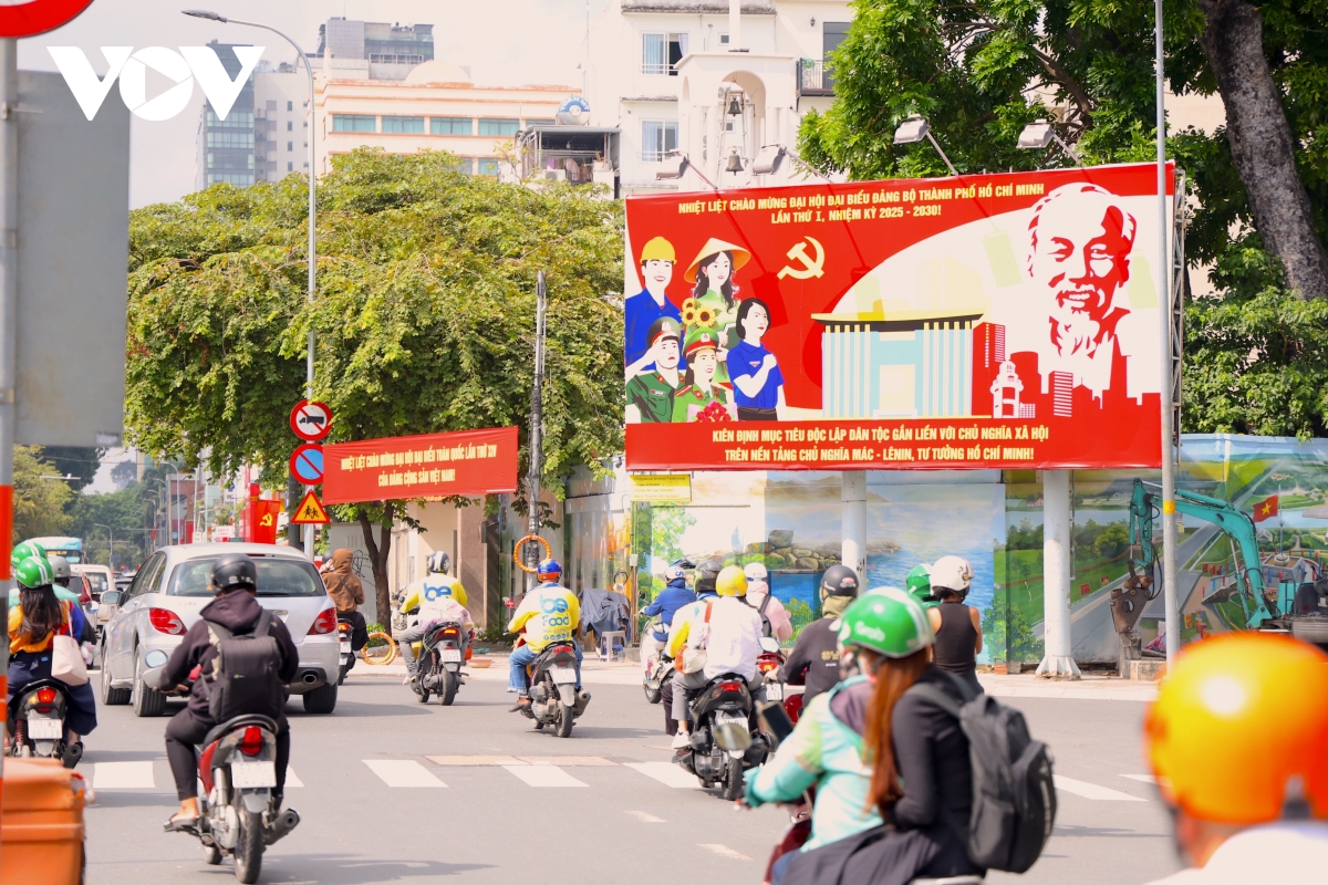 VOV.VN - Những ngày này, các tuyến đường ở trung tâm TP.HCM khoác lên mình một diện mạo mới, ngập tràn cờ hoa, pano và khẩu hiệu rực rỡ để chào mừng Đại hội đại biểu Đảng bộ TP.HCM lần thứ I, nhiệm kì 2025 - 2030.