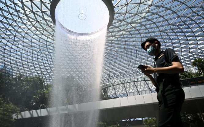| Một nam giới đeo khẩu trang phòng dịch Covid-19 tại một sân bay của Singapore. Ảnh: Getty, |