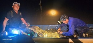 Người dân giao nộp cá sấu nặng 37kg cho Đồn Biên phòng Sông Trăng