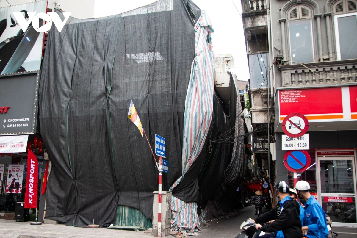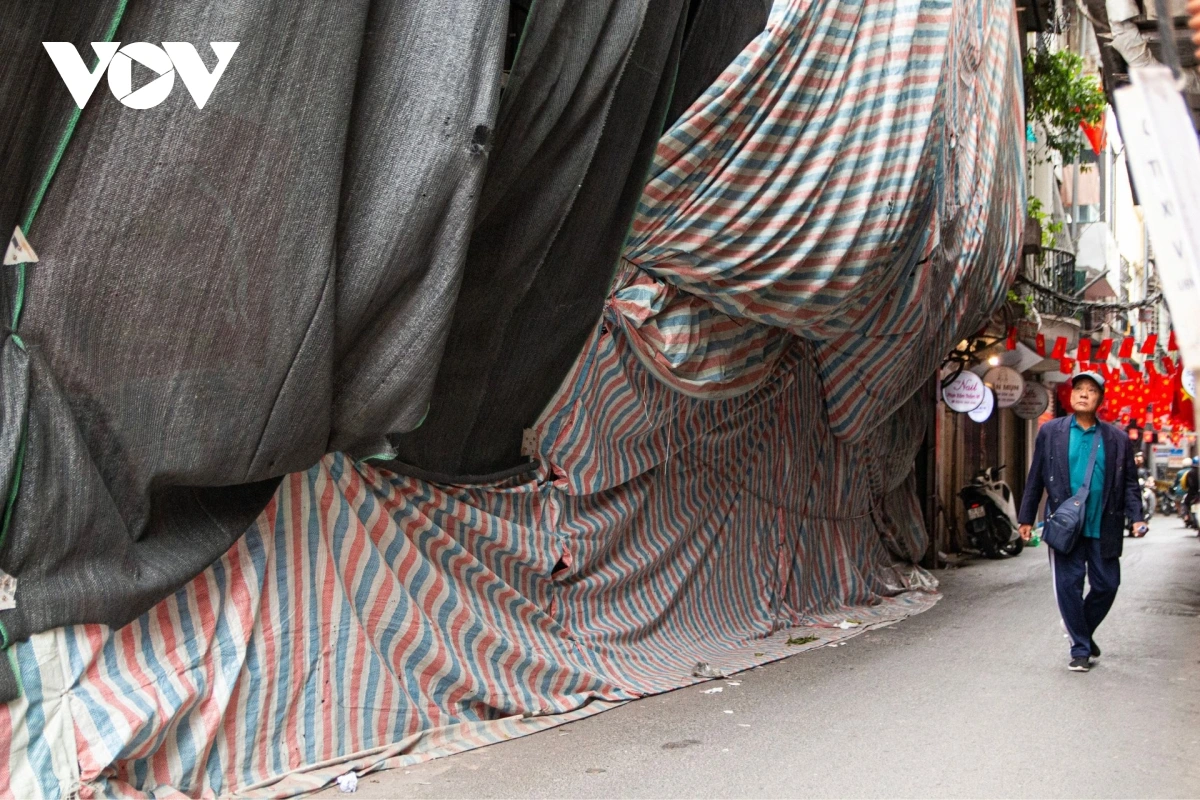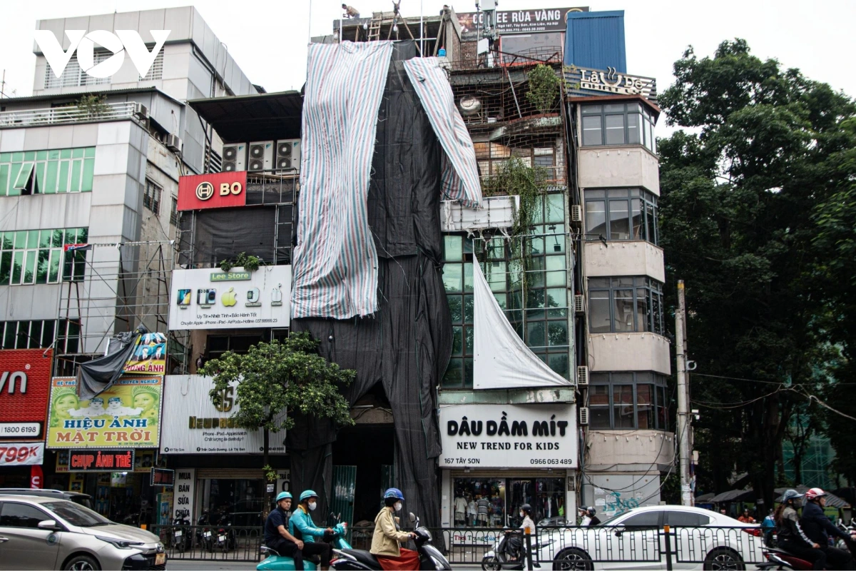 Dù các công trình đã được che chắn, song với người dân quanh khu vực, hình ảnh những tấm bạt trên cao vẫn là nỗi ám ảnh mỗi khi đi qua. Theo ghi nhận của phóng viên, nhiều người sinh sống và thường xuyên lưu thông trên tuyến phố này không giấu được cảm giác lo sợ, e dè mỗi khi ngang qua công trình.
