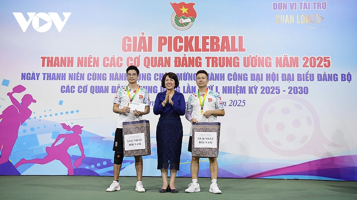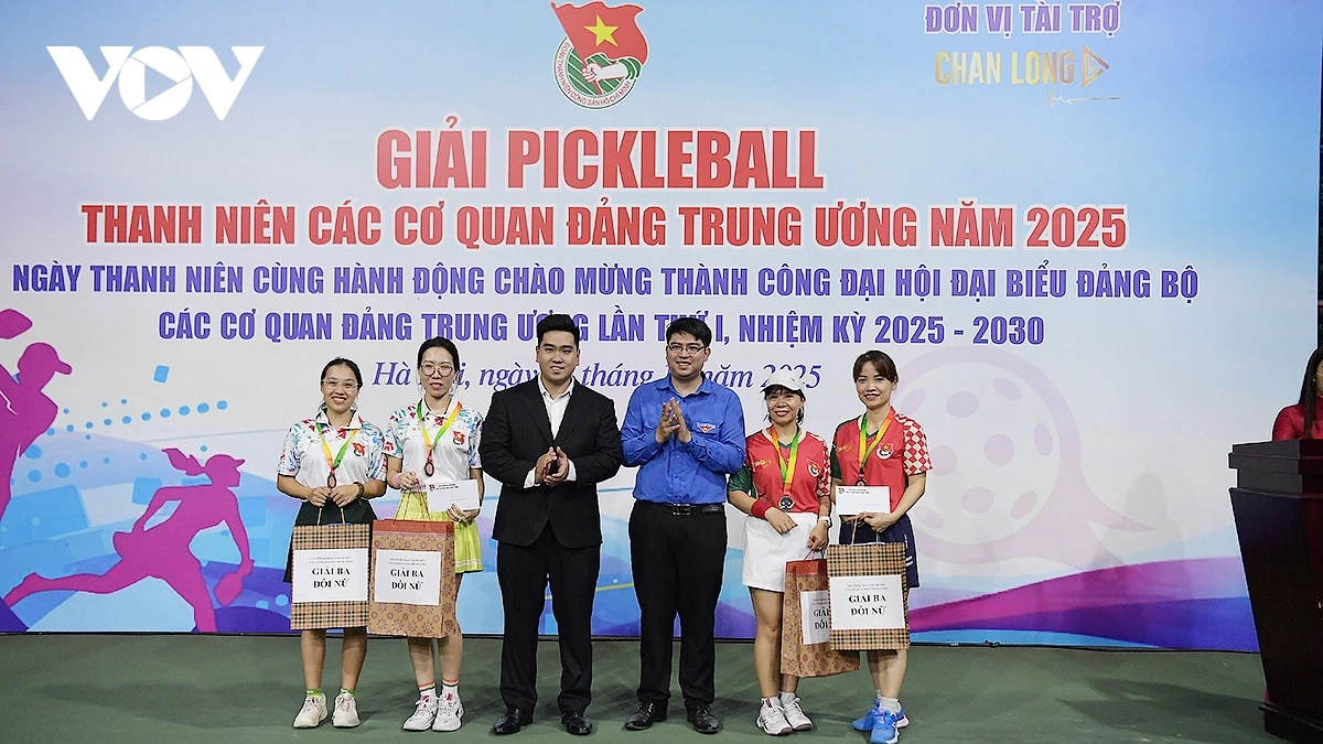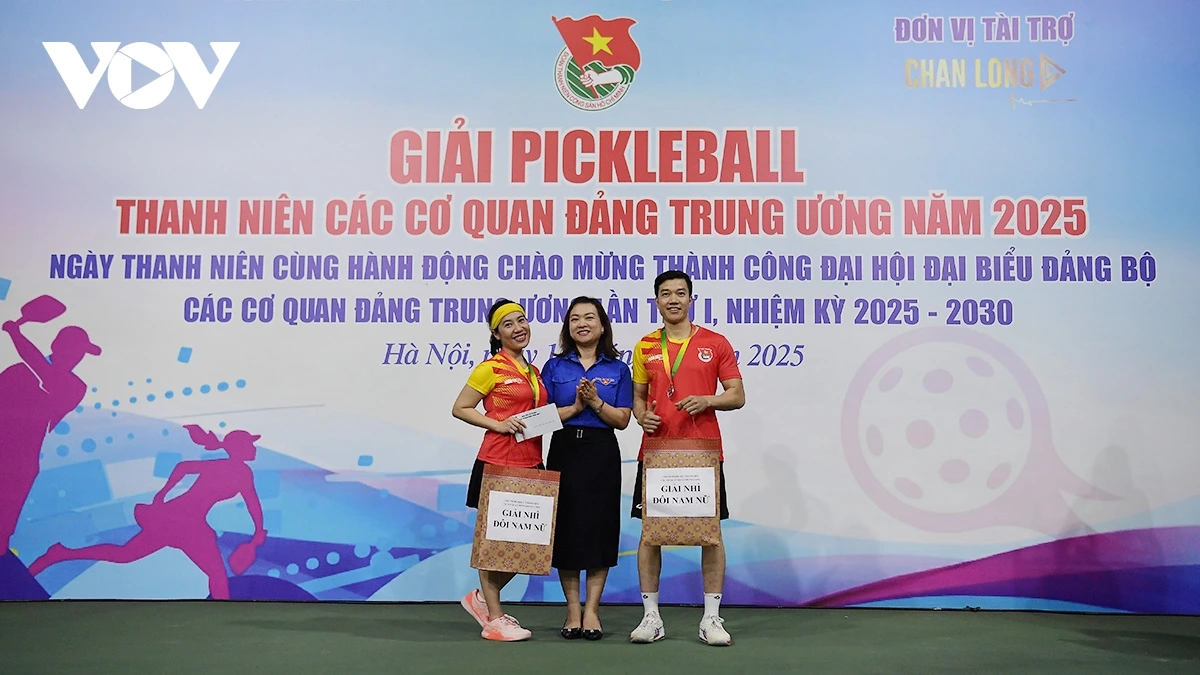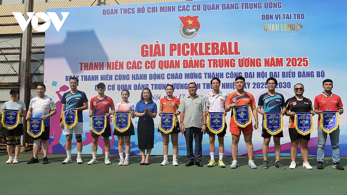 VOV.VN - Diễn ra chiều 17/10, giải Pickleball thanh niên các cơ quan Đảng Trung ương năm 2025 quy tụ 10 cơ sở đoàn trực thuộc tham gia thi đấu ở ba nội dung: đôi nam, đôi nữ và đôi nam – nữ.