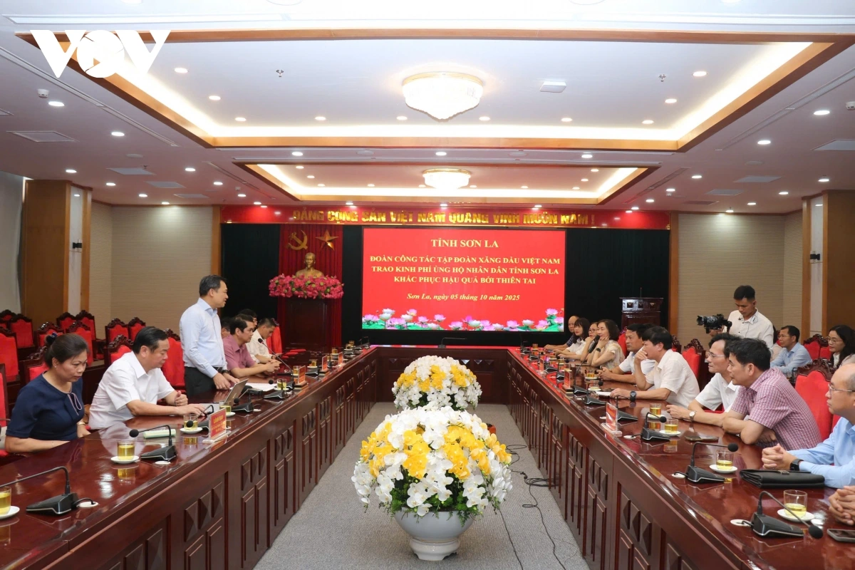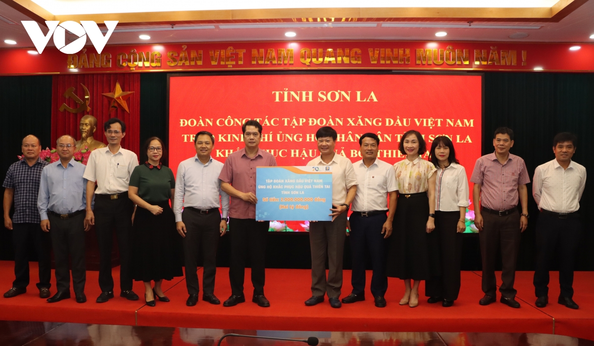 Chung tay hỗ trợ tỉnh Sơn La khắc phục hậu quả thiên tai, Tập đoàn Xăng dầu Việt Nam đã đến thăm, động viên, trao ủng hộ kinh phí 2 tỷ đồng. Trước đó, đồng hành cùng địa phương trong năm 2024, Tập đoàn Xăng dầu Việt Nam và các đơn vị thành viên đã ủng hộ 6 tỷ đồng hỗ trợ đồng bào Sơn La khắc phục hậu quả thiên tai và xây dựng các công trình nhà bếp, nhà công vụ, nhà bán trú trường học, xây dựng cầu dân sinh...