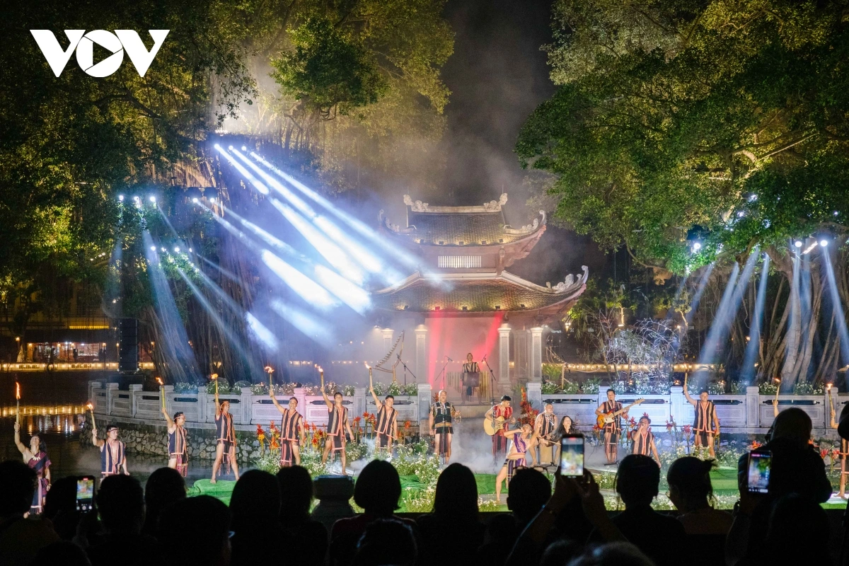 VOV.VN - Diễn ra trong khuôn khổ Festival Thăng Long 2025, đêm nhạc “Sông Hồng gọi, đại ngàn reo” tại Hồ Văn – Văn Miếu - Quôc Tử Giám (Hà Nội) mang đến hành trình âm nhạc độc đáo, nơi tiếng cồng chiêng Tây Nguyên hòa cùng hơi thở nghìn năm Thăng Long, tạo nên không gian giao hòa văn hóa đầy tự hào.